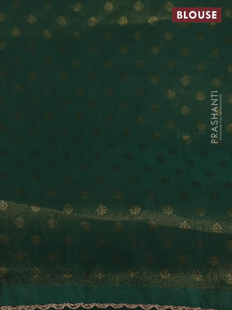 Banarasi semi crepe saree green with allover zari woven brocade weaves and lace work border