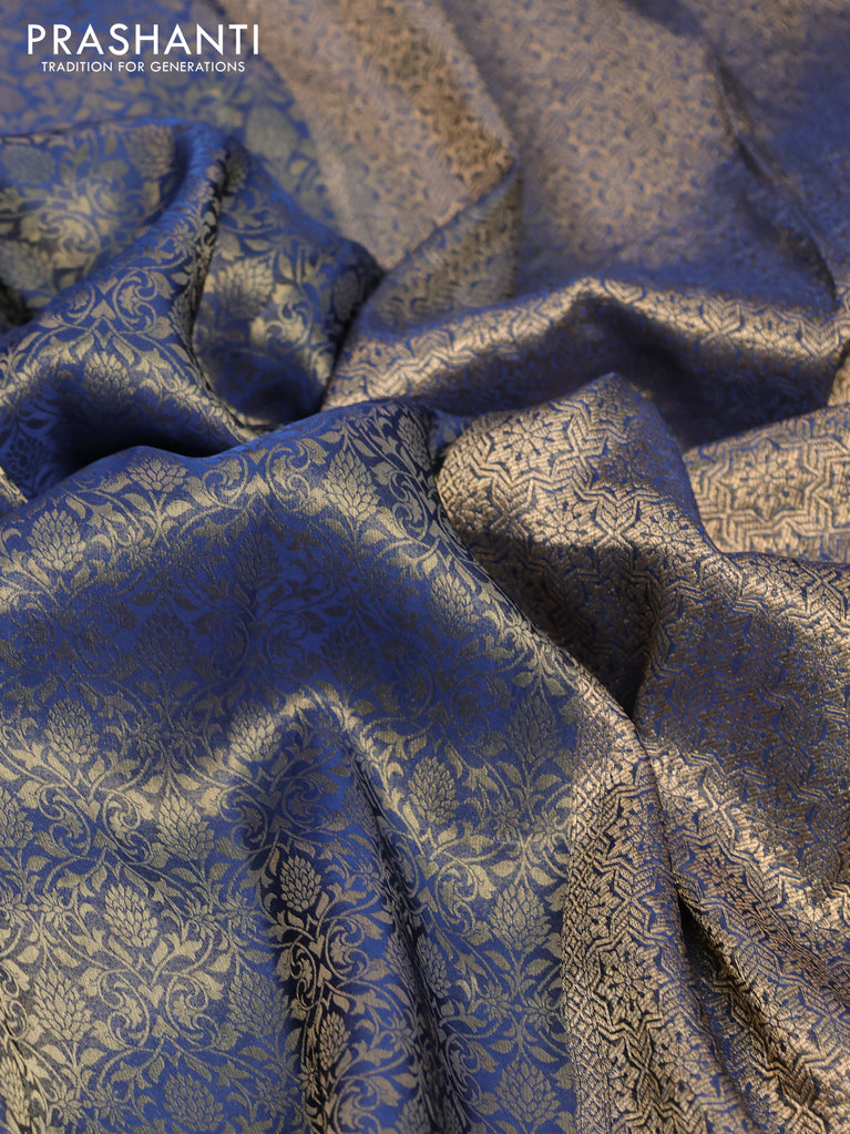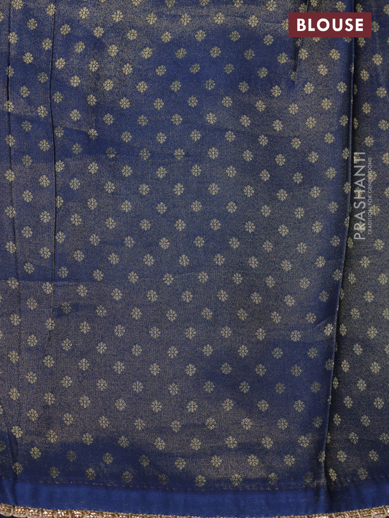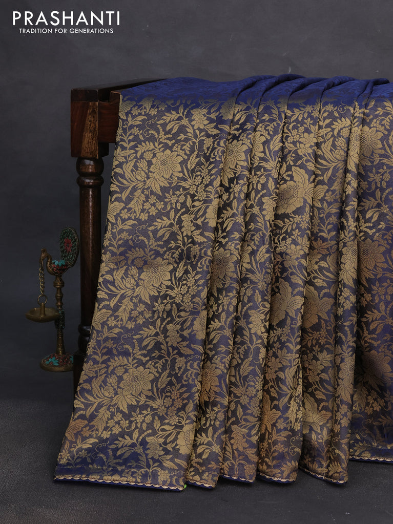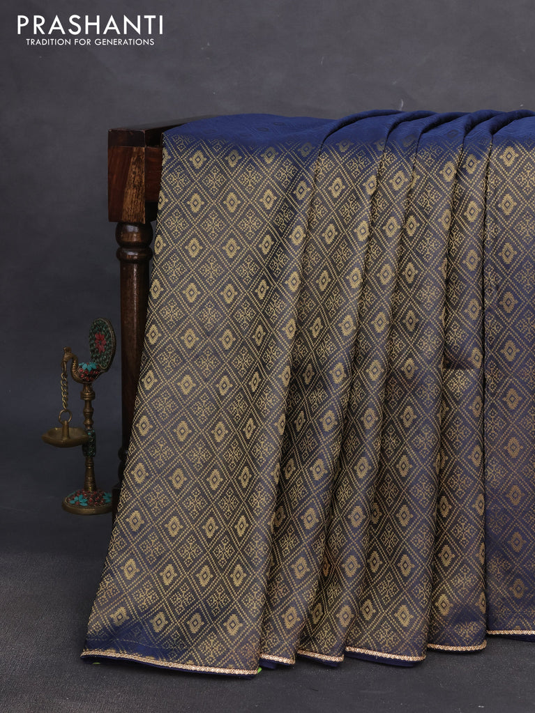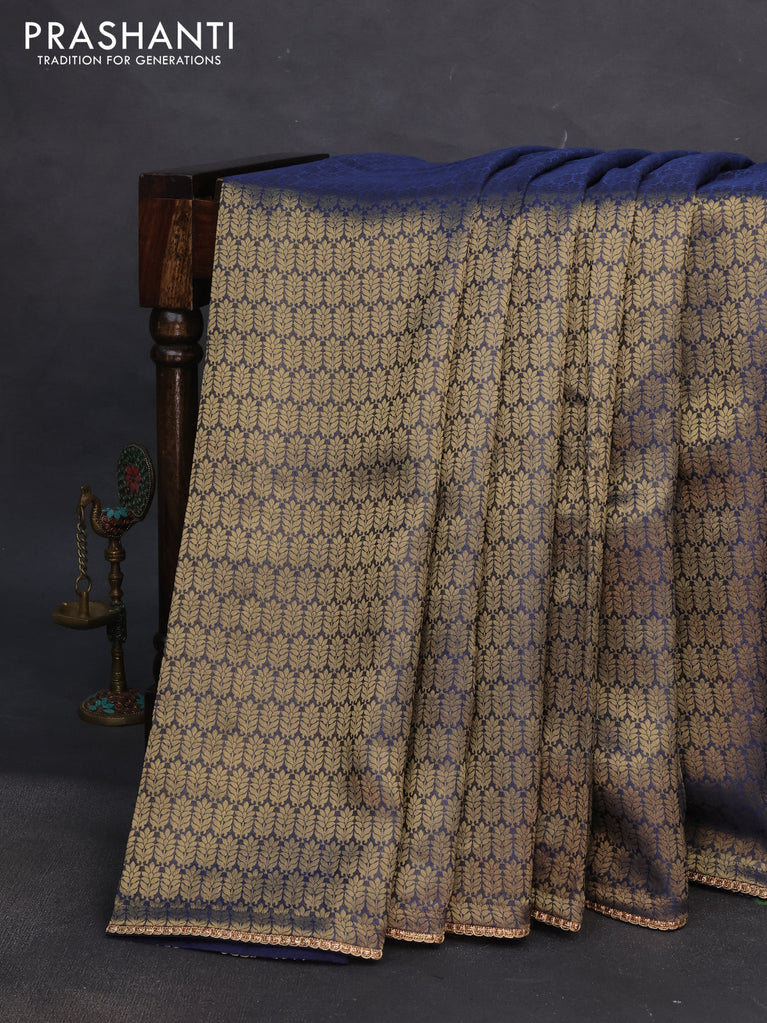 Banarasi semi crepe saree peacock blue with allover zari woven brocade weaves and lace work border