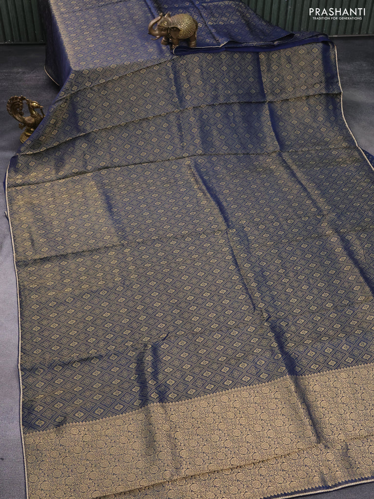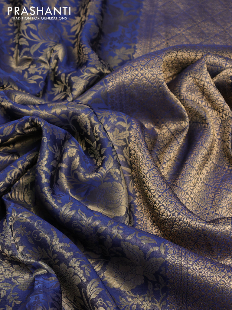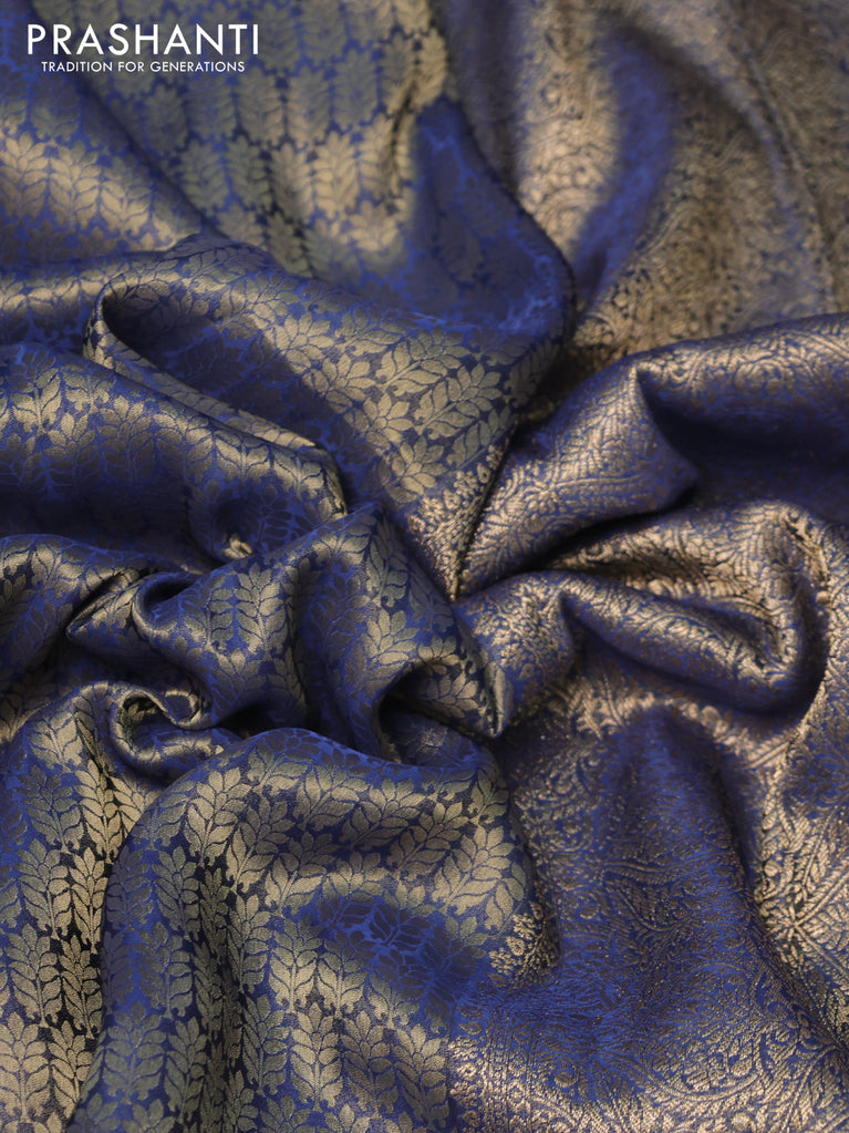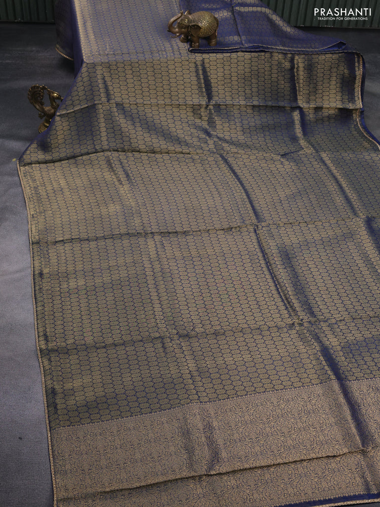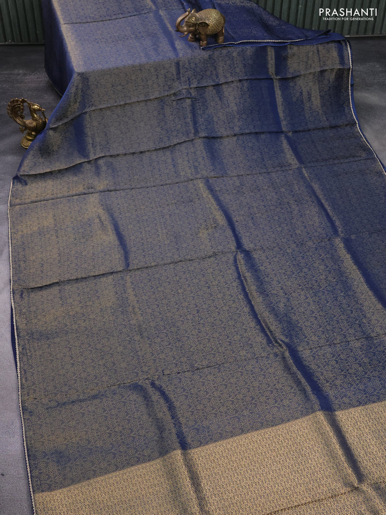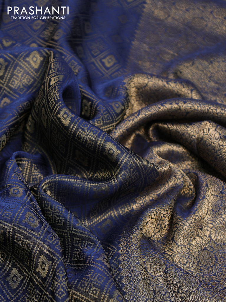 Banarasi semi crepe saree peacock blue with allover zari woven brocade weaves and lace work border