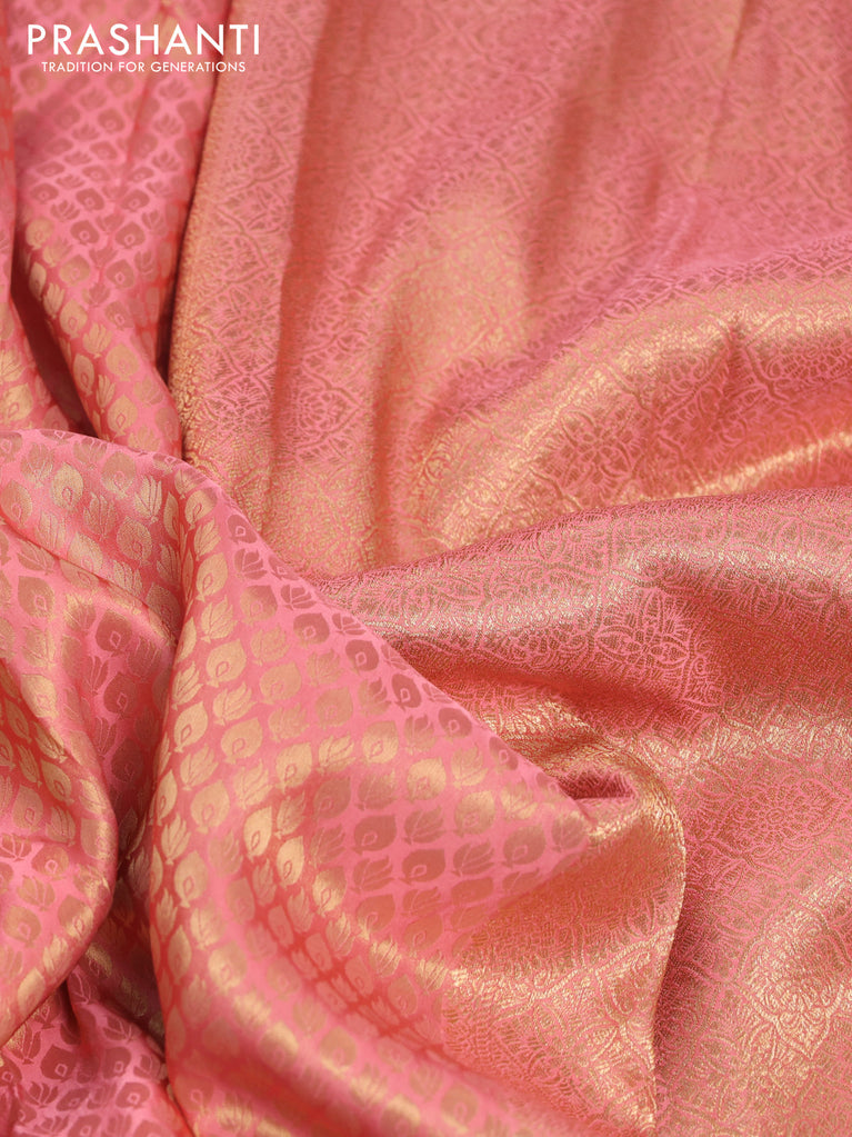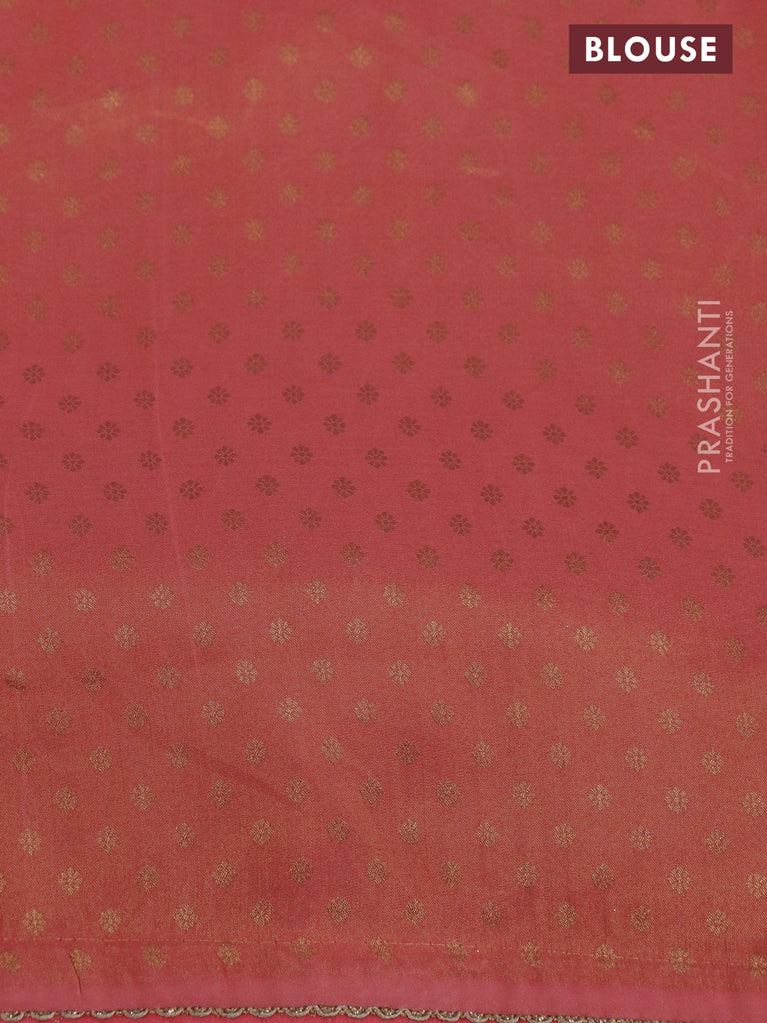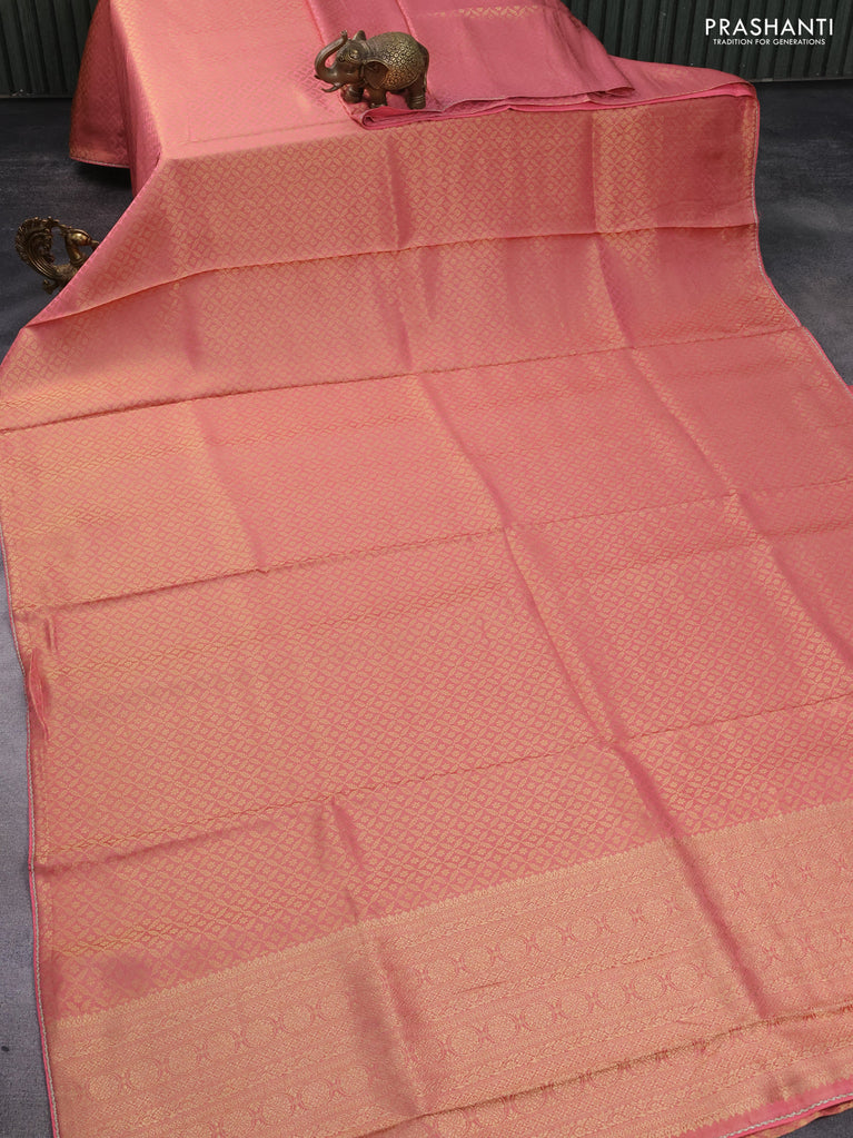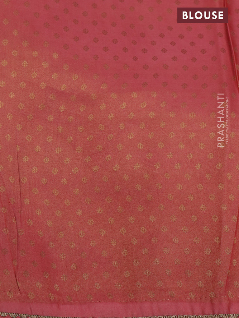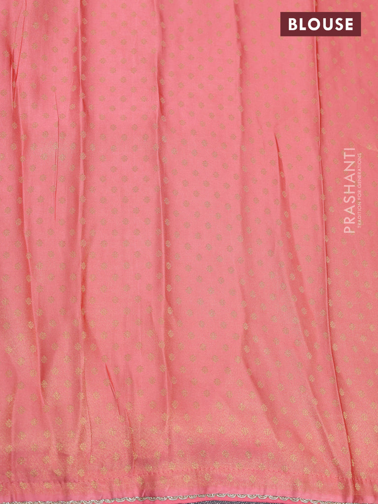 Banarasi semi crepe saree peach pink with allover zari woven brocade weaves and lace work border