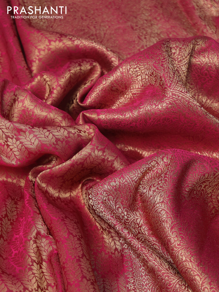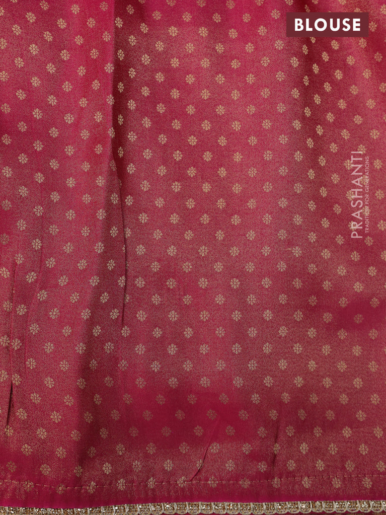 Banarasi semi crepe saree pink with allover zari woven brocade weaves and lace work border