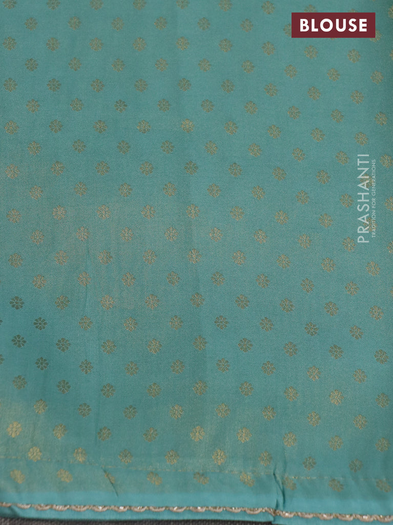 Banarasi semi crepe saree teal blue shade with allover zari woven brocade weaves and lace work border