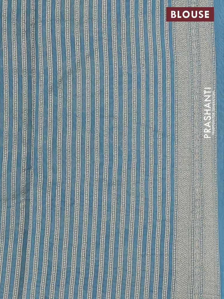 Banarasi silk cotton saree off white and peacock blue with allover thread & zari woven butta weaves and woven border