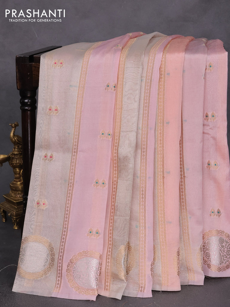 Banarasi tissue semi silk saree peach pink with zari weaves & buttas and zari woven butta border