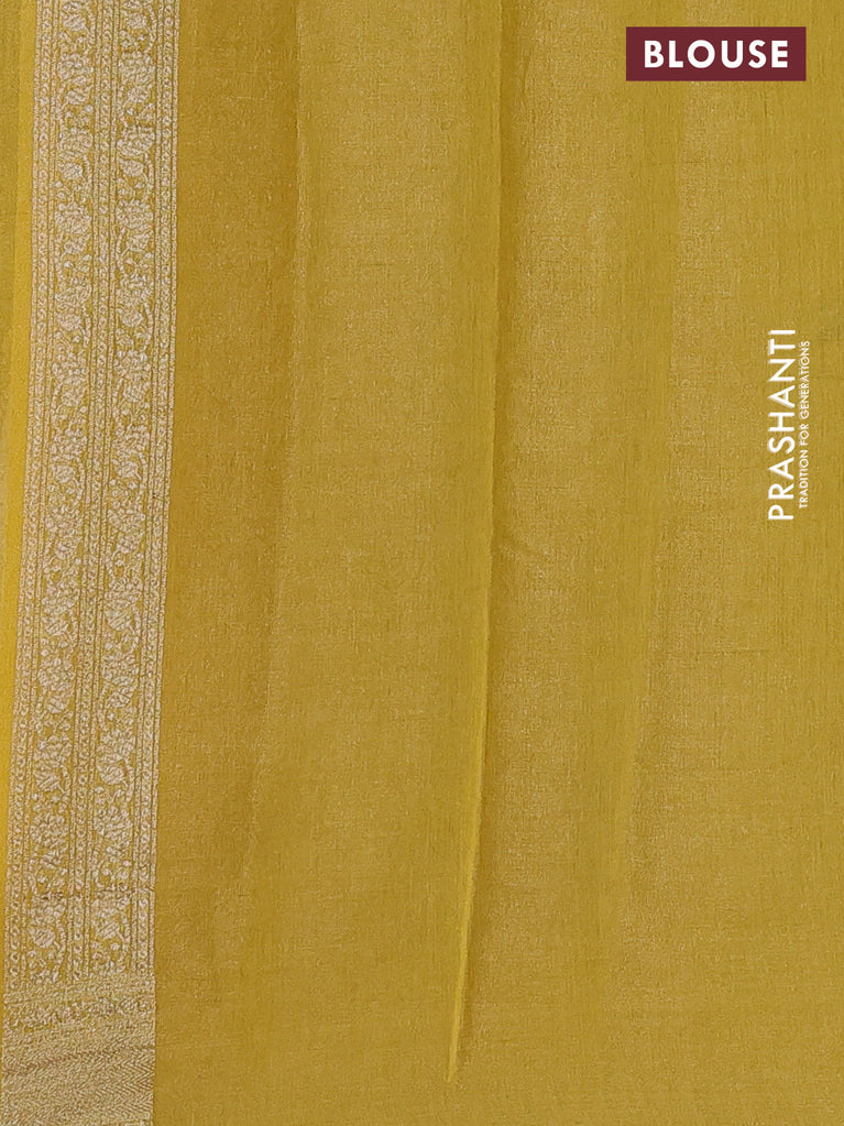 Banarasi tissue silk cotton saree mustard yellow and pastel green with allover thread & zari woven butta weaves and woven border
