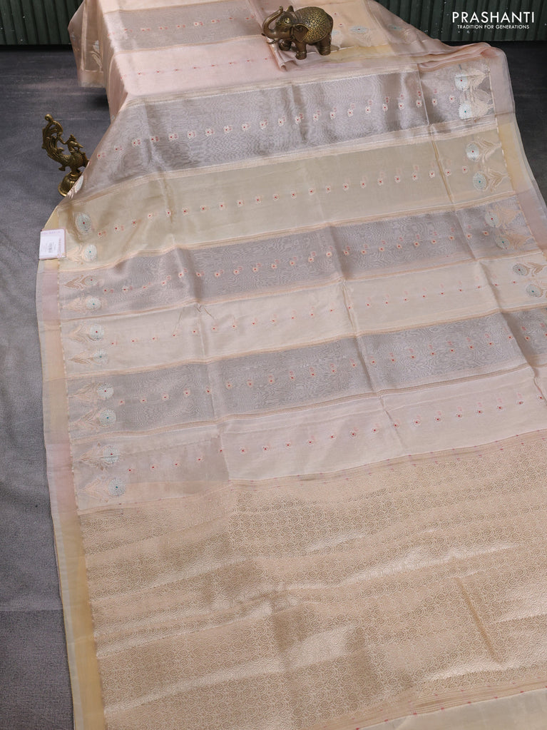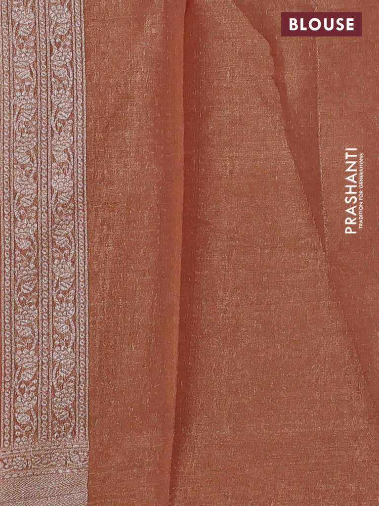 Banarasi tissue semi silk saree sandal and mild peach pink with zari weaves & buttas and zari woven border
