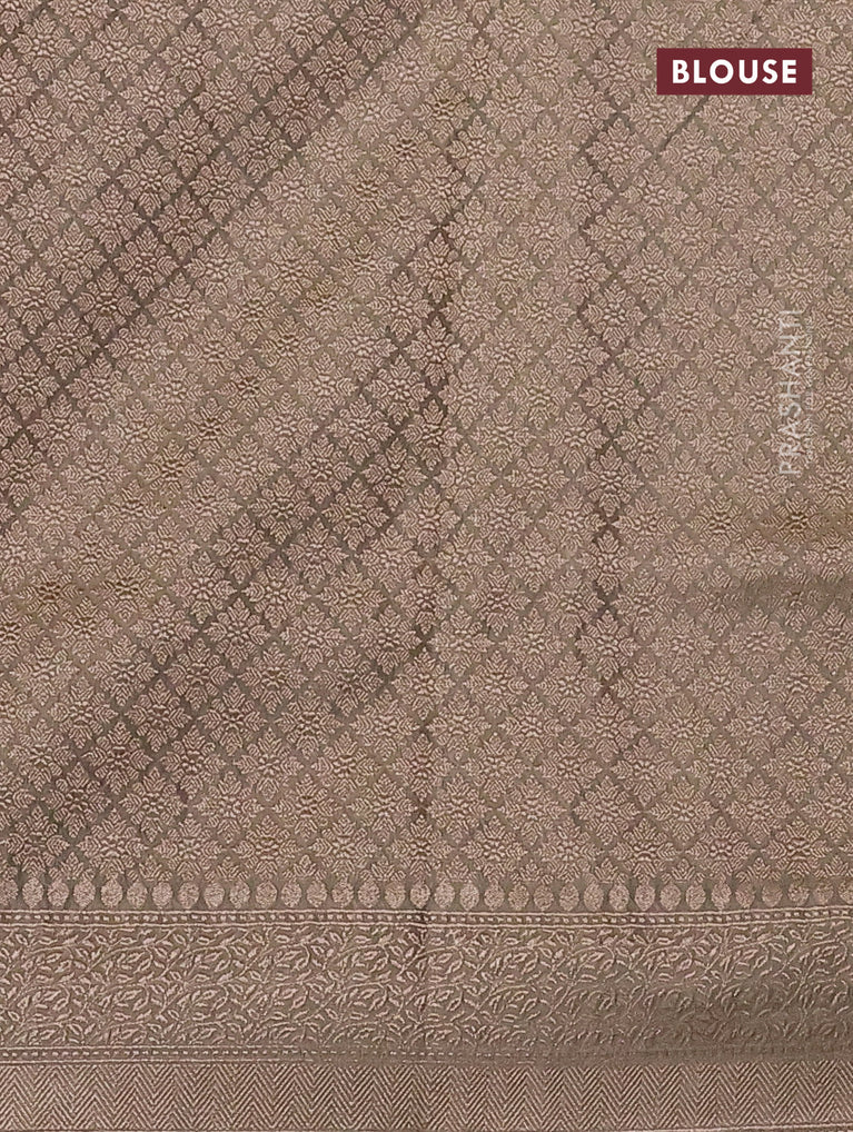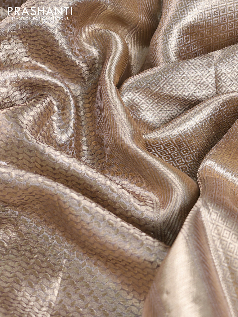 Banarasi tissue silk saree dark sandal with allover silver & gold zari weaves and zari woven border