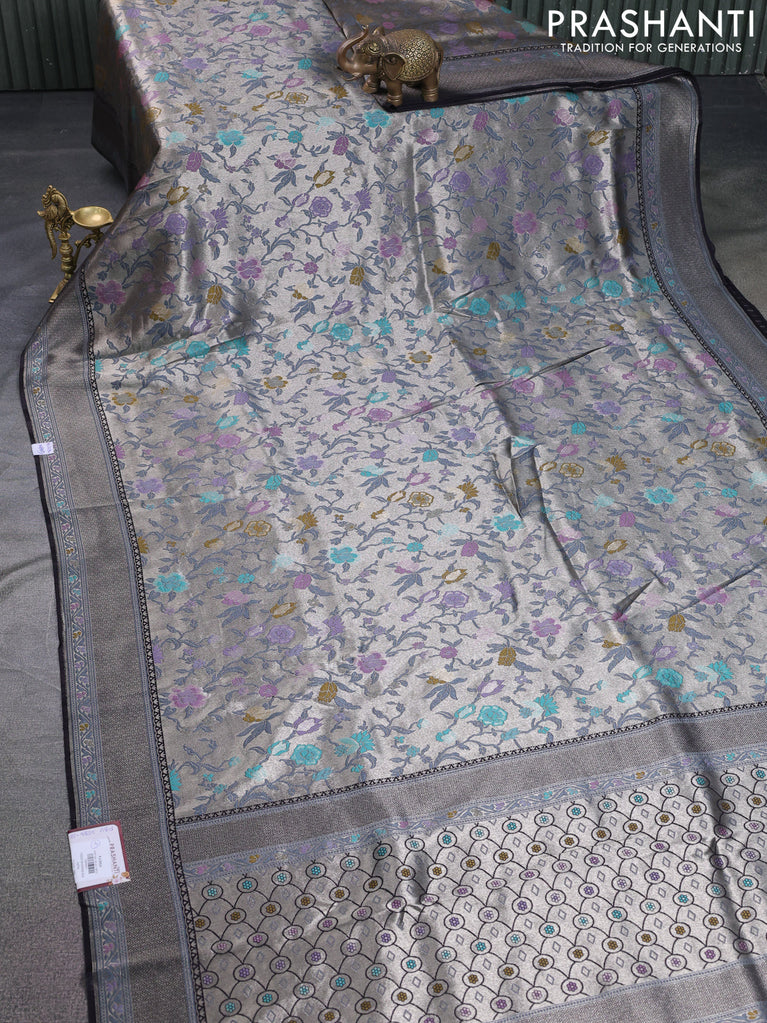 Banarasi tissue silk saree grey and black with allover zari woven brocade weaves and zari woven border