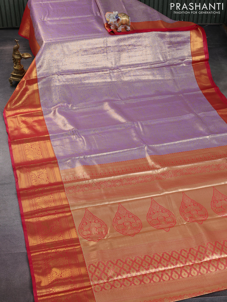 Bangalori tissue silk saree mild lavender and reddish pink with allover zari woven brocade weaves and long zari woven border