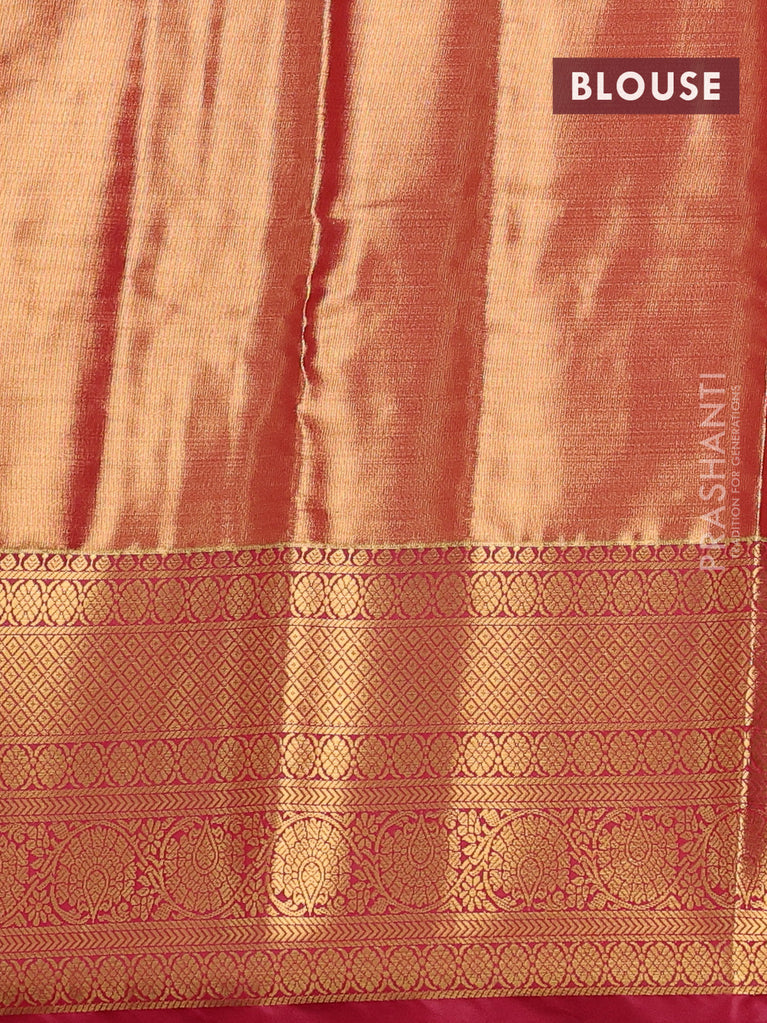 Bangalori tissue silk saree peach pink and red with allover zari woven brocade weaves and long zari woven border
