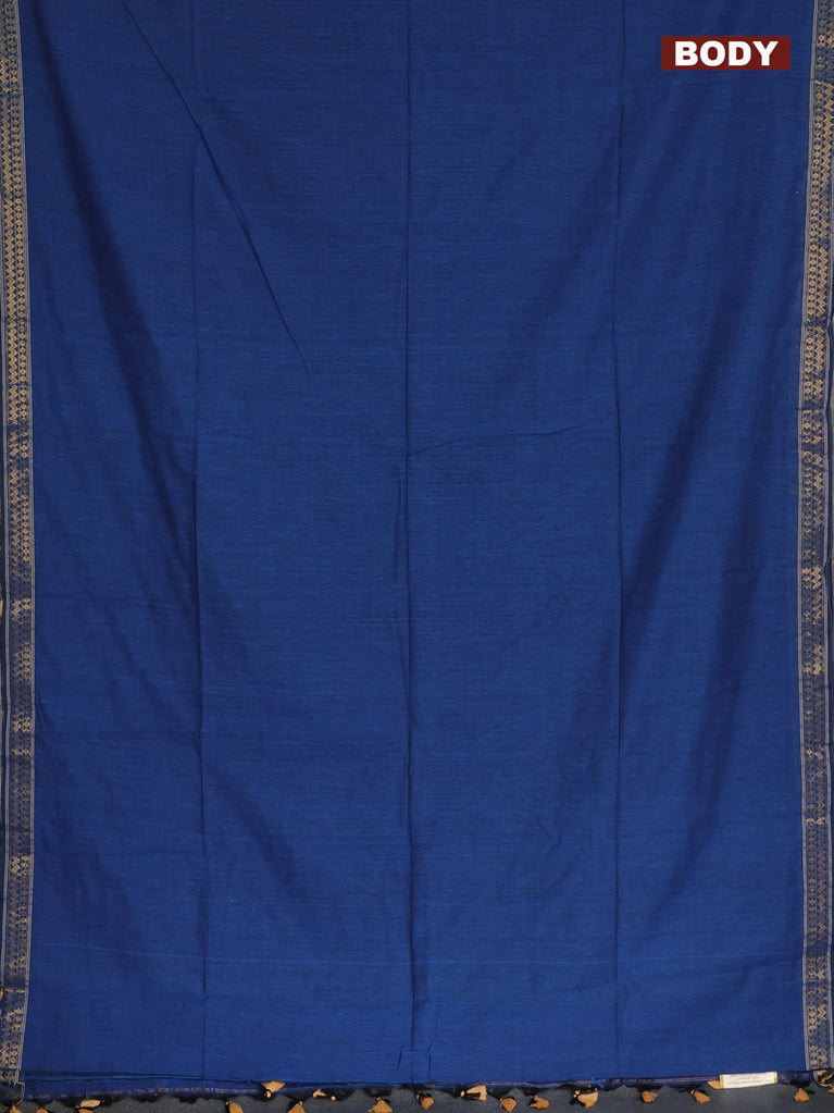Bengal soft cotton saree cs blue with plain body and zari woven border