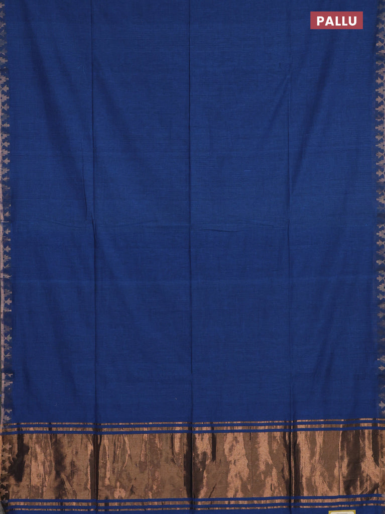 Bengal soft cotton saree cs blue with plain body and temple design zari woven border