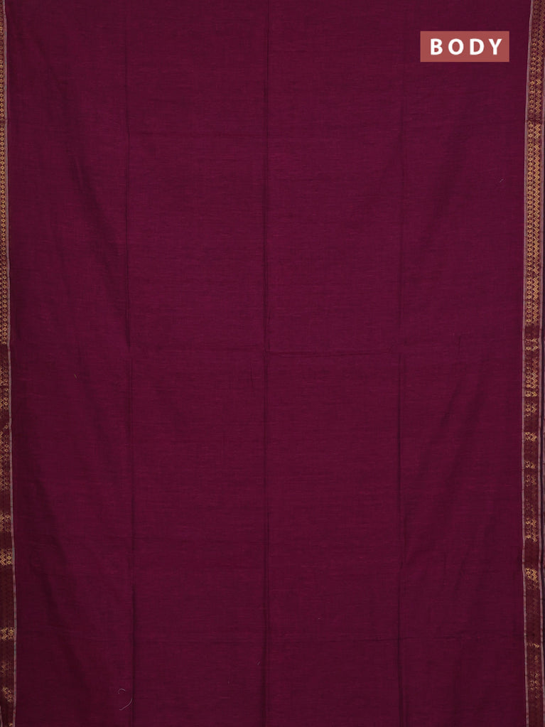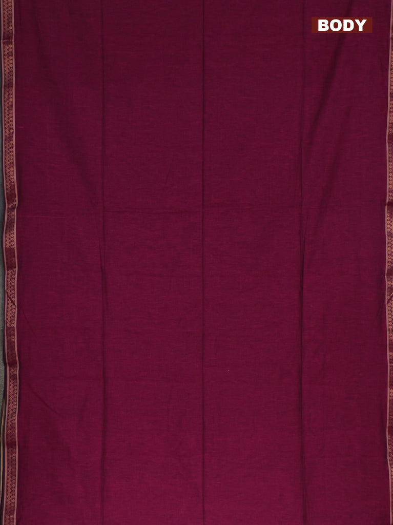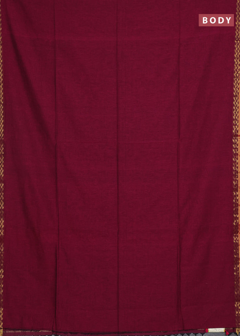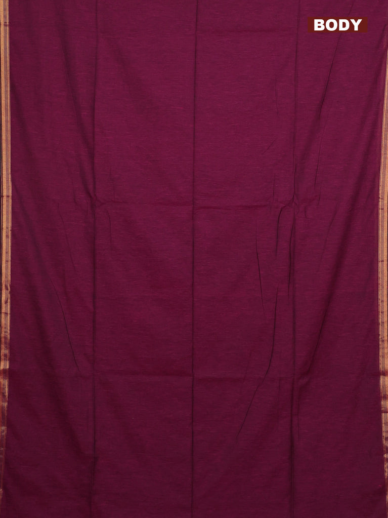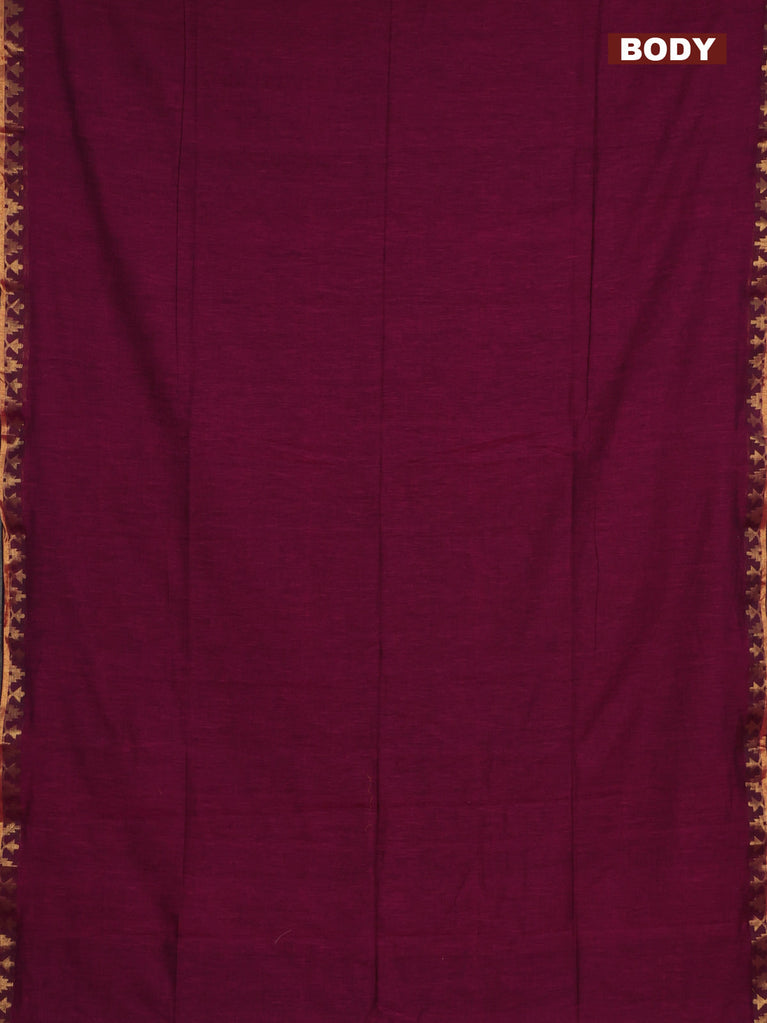 Bengal soft cotton saree dark magenta pink with plain body and zari woven border