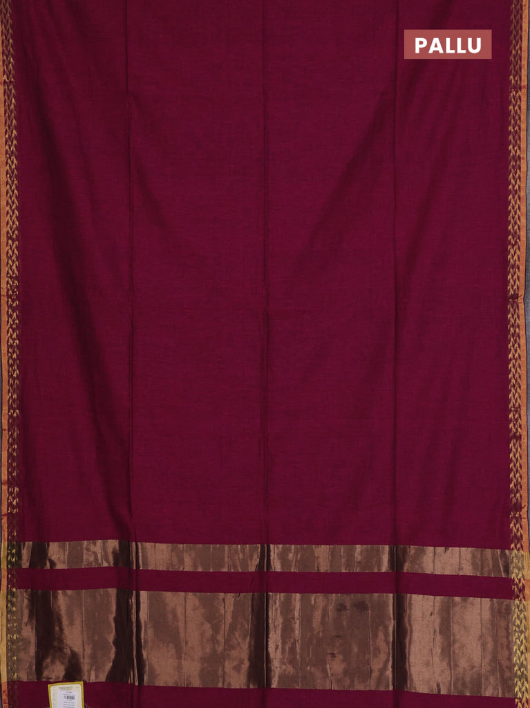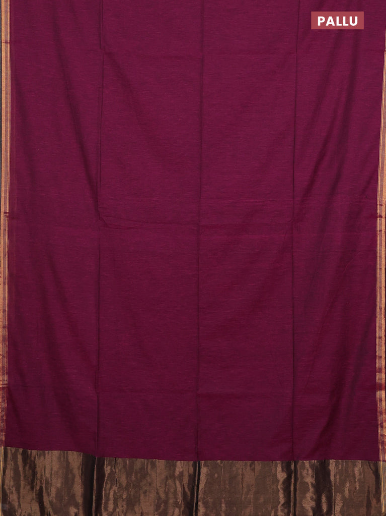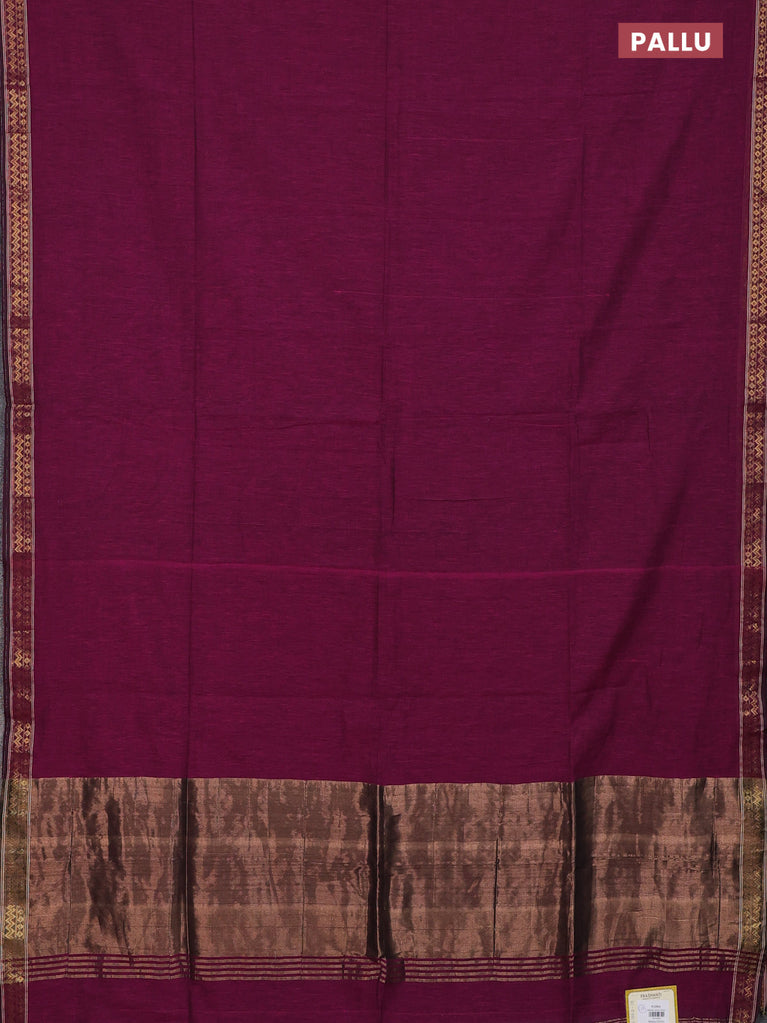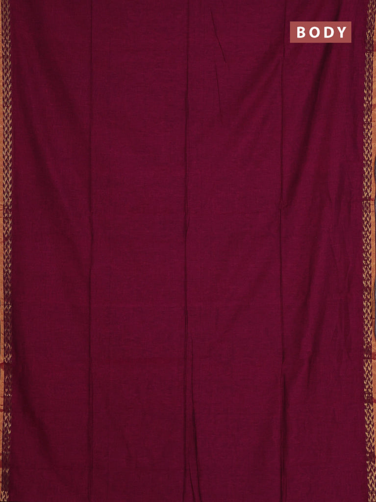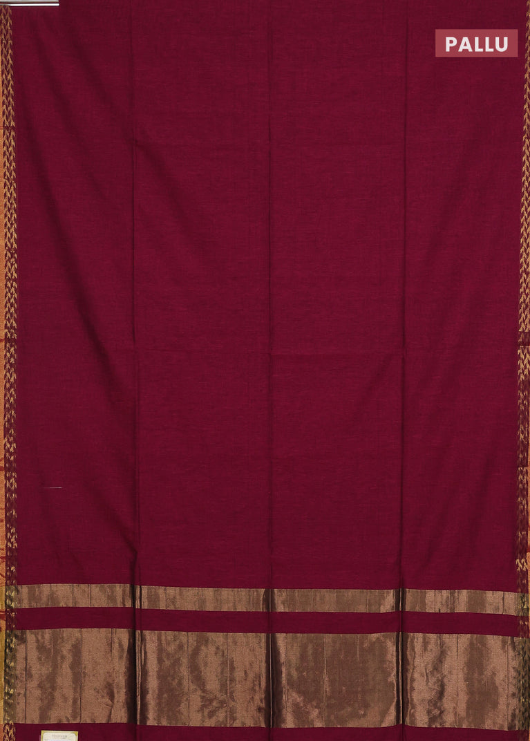 Bengal soft cotton saree dark magenta pink with plain body and zari woven border