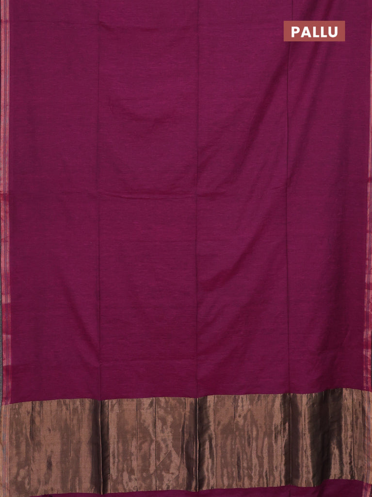 Bengal soft cotton saree dark magenta pink and violet with plain body and zari woven border