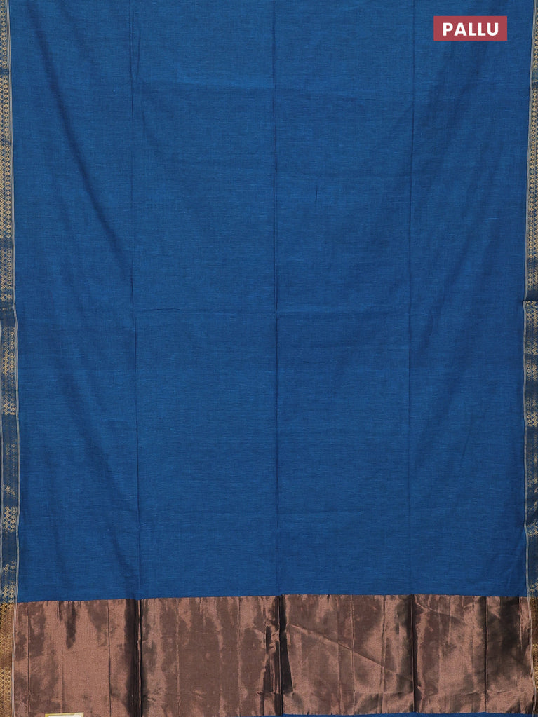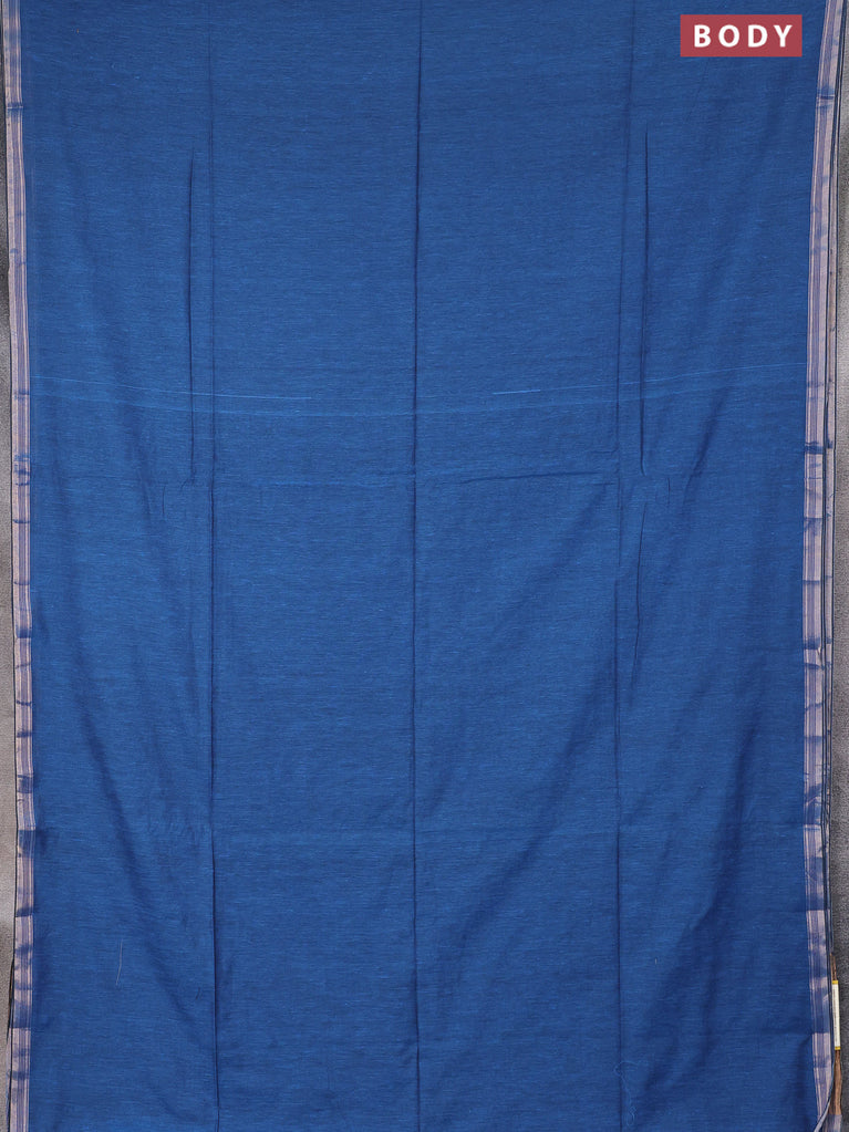 Bengal soft cotton saree cs blue with plain body and zari woven piping border