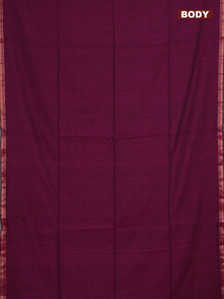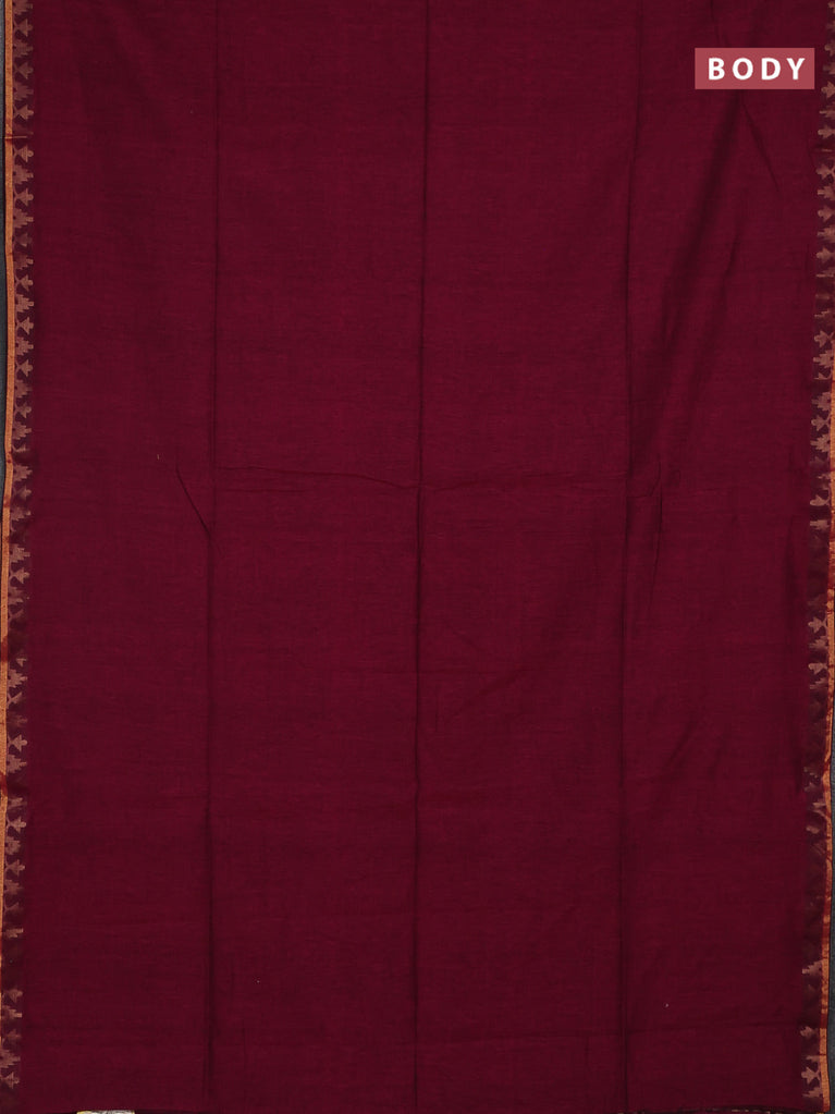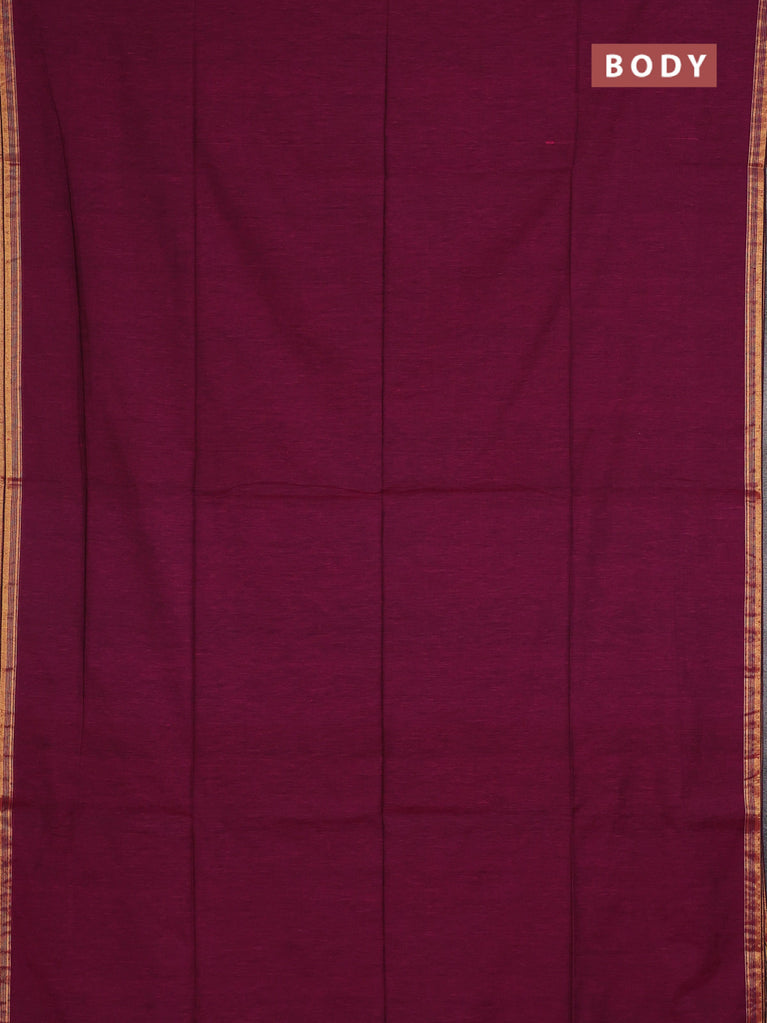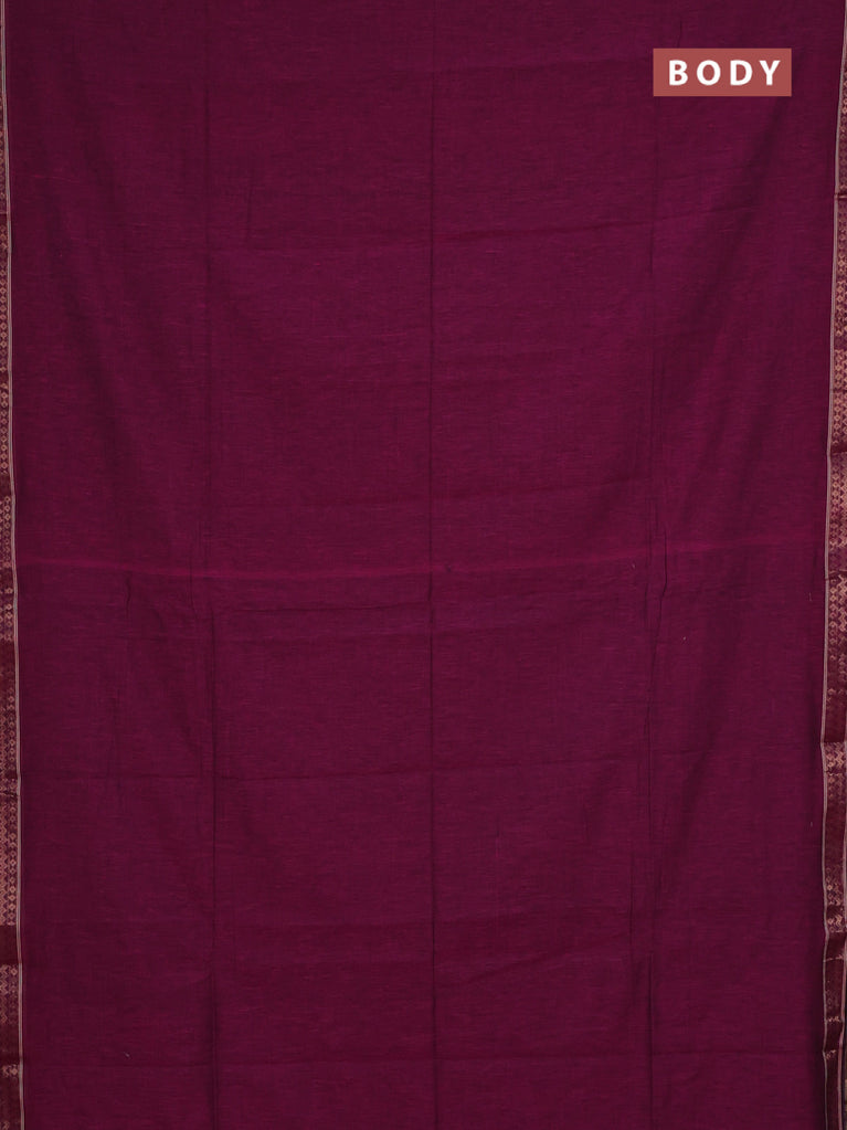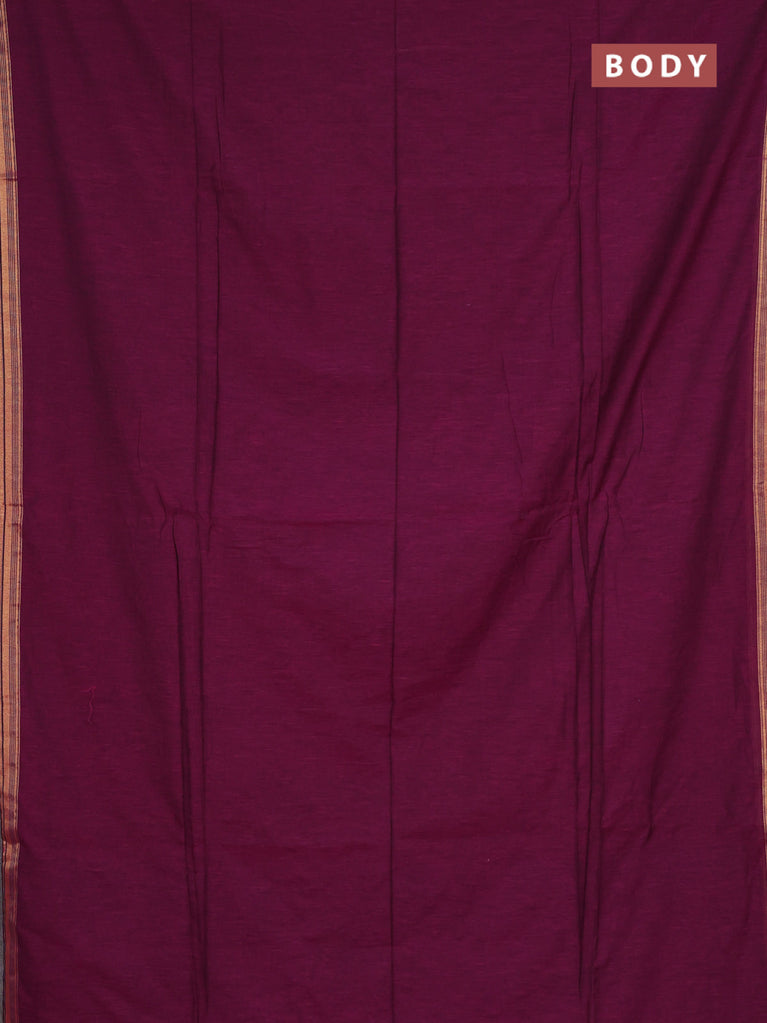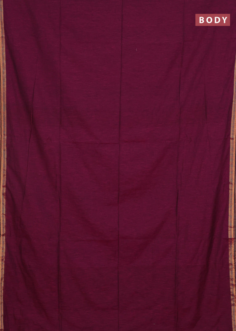 Bengal soft cotton saree dark magenta pink and blue with plain body and zari woven border