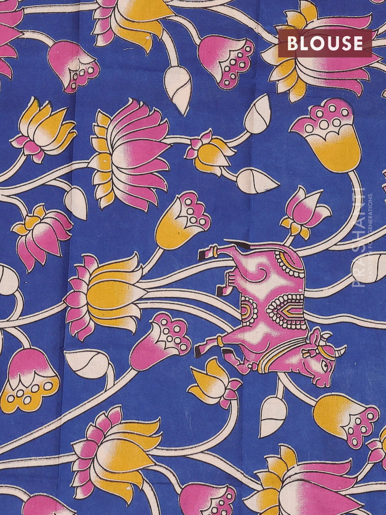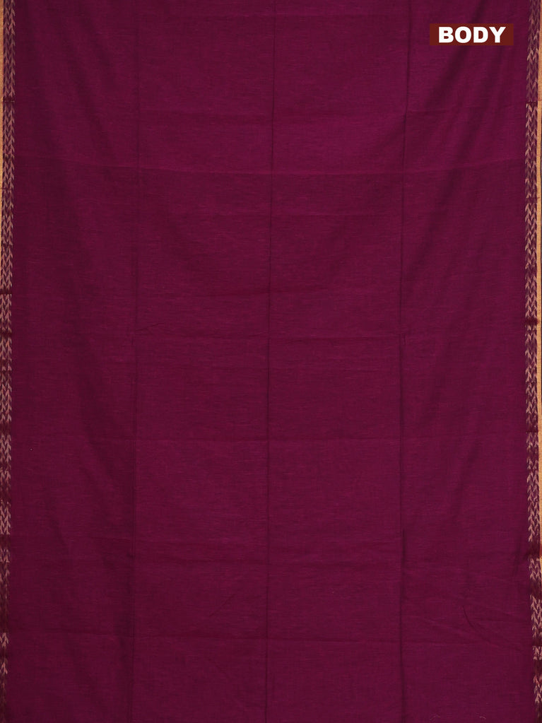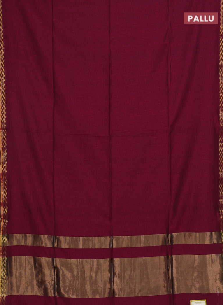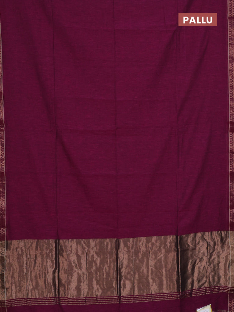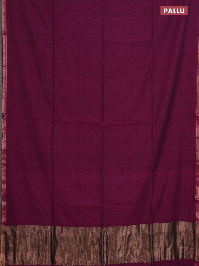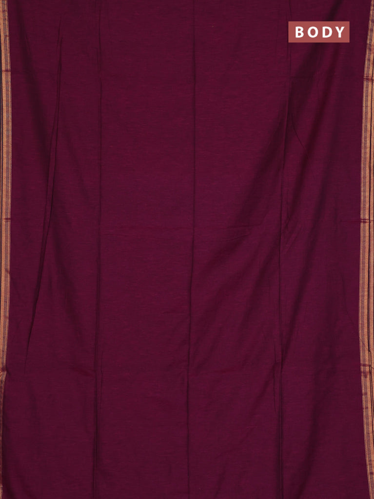 Bengal soft cotton saree dark magenta pink and blue with plain body and zari woven border