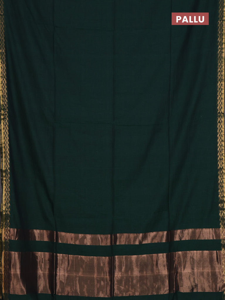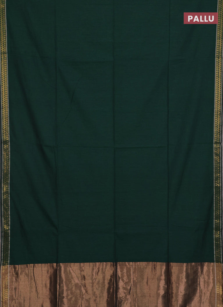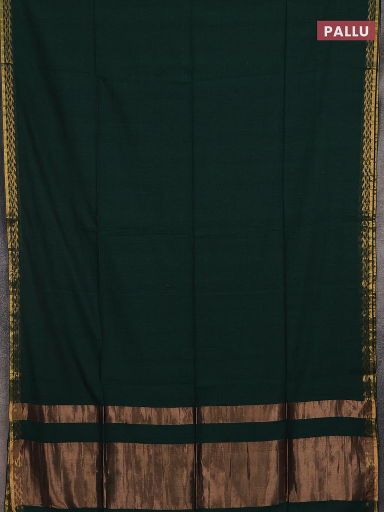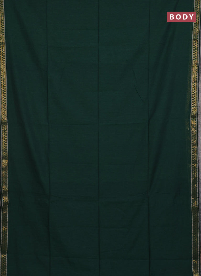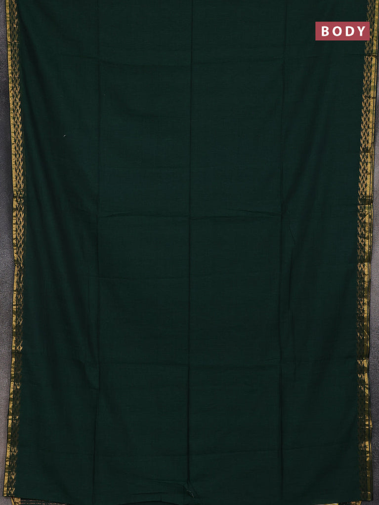 Bengal soft cotton saree dark green and dark mustard with plain body and zari woven border