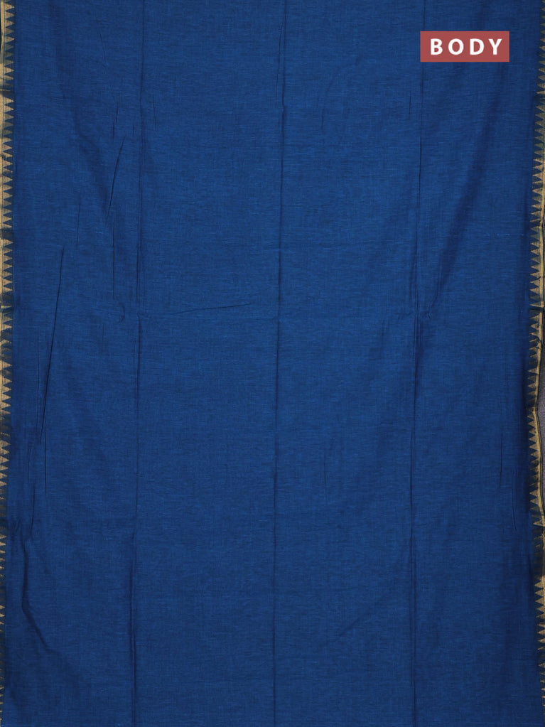 Bengal soft cotton saree cs blue with plain body and zari woven border