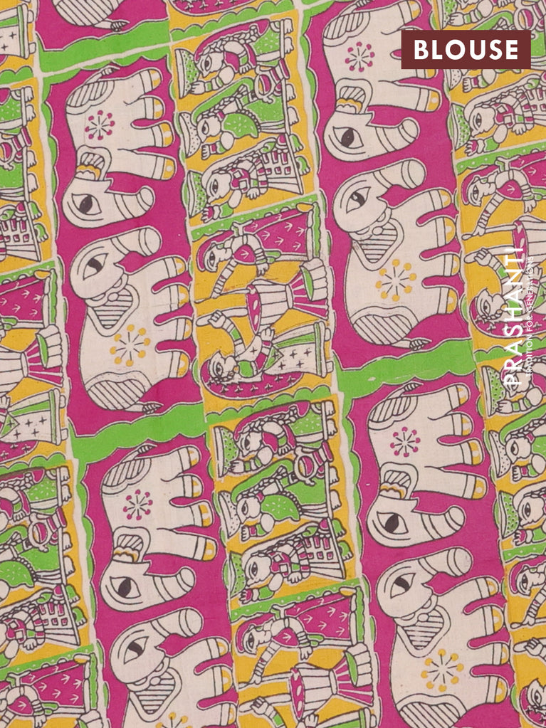 Bengal soft cotton saree dark magenat pink and blue with plain body and zari woven border