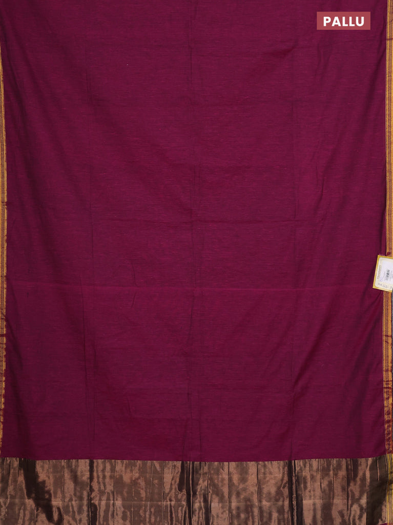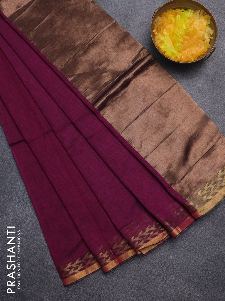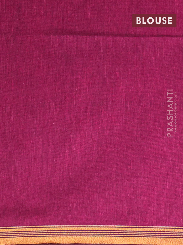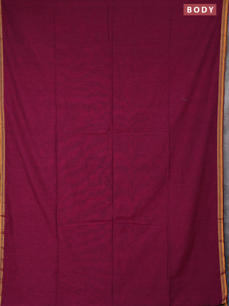 Bengal soft cotton saree magenta pink with plain body and zari woven piping border