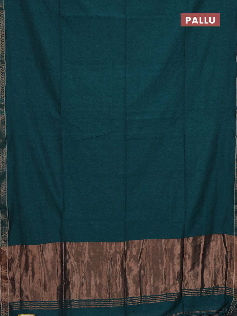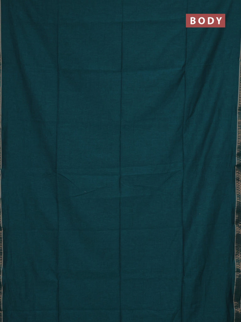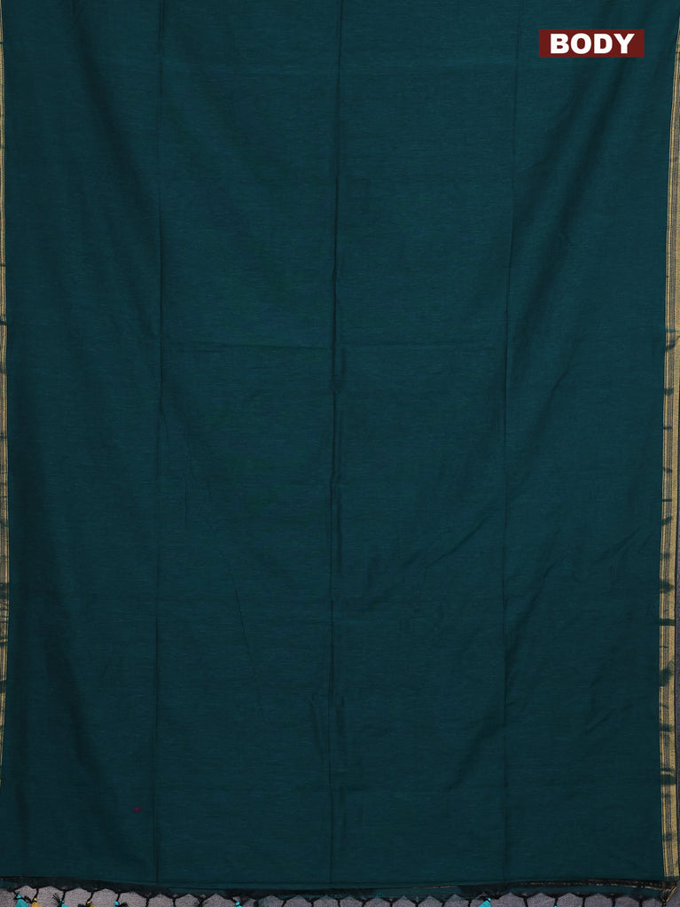 Bengal soft cotton saree magenta pink and peacock blue with plain body and zari woven border