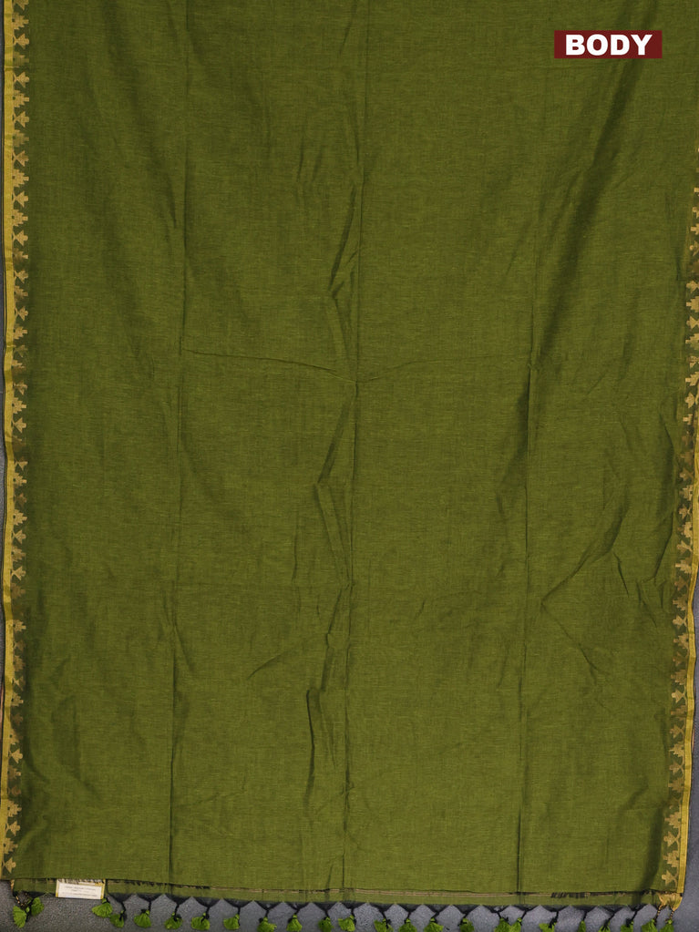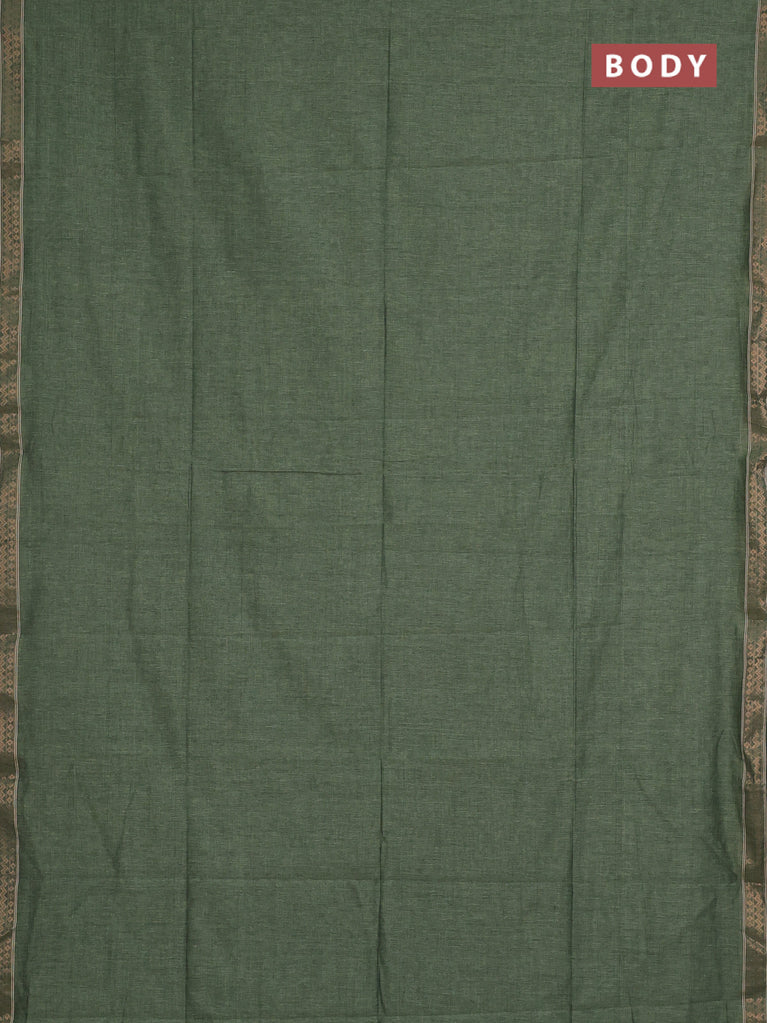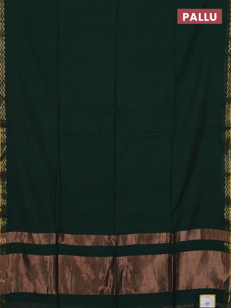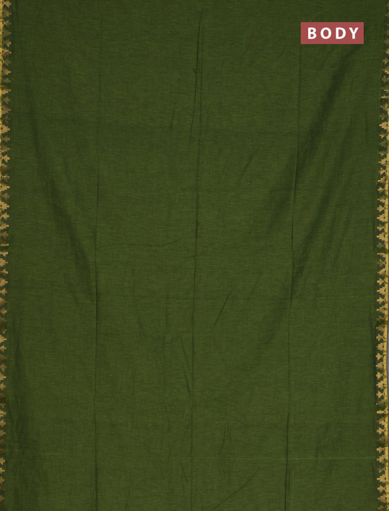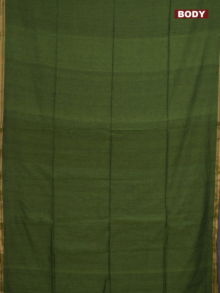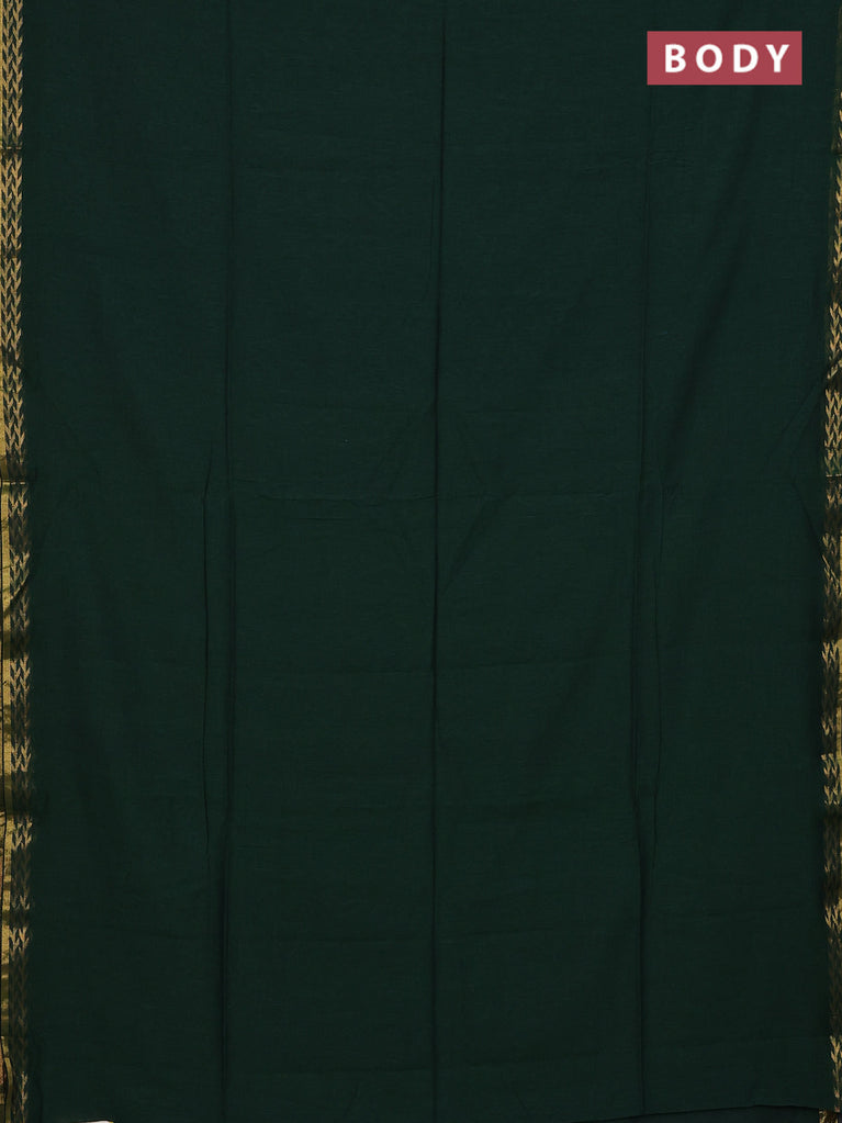 Bengal soft cotton saree green with plain body and zari woven piping border