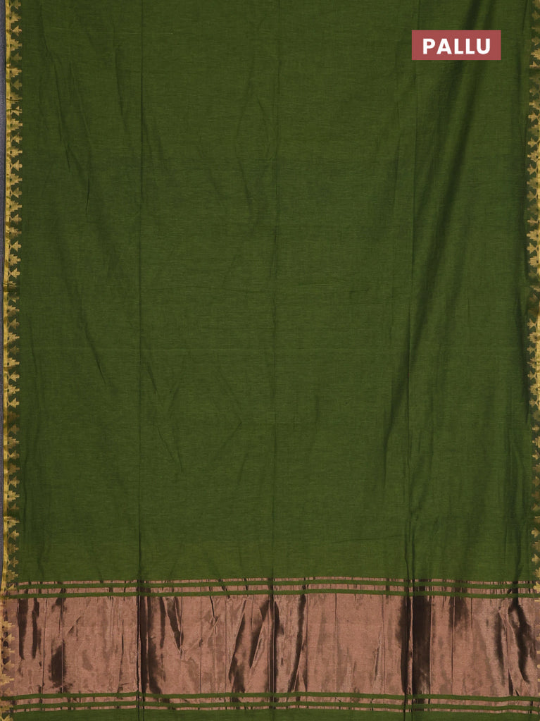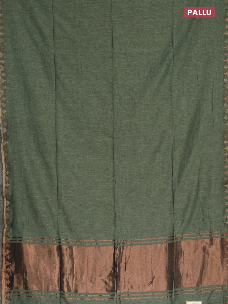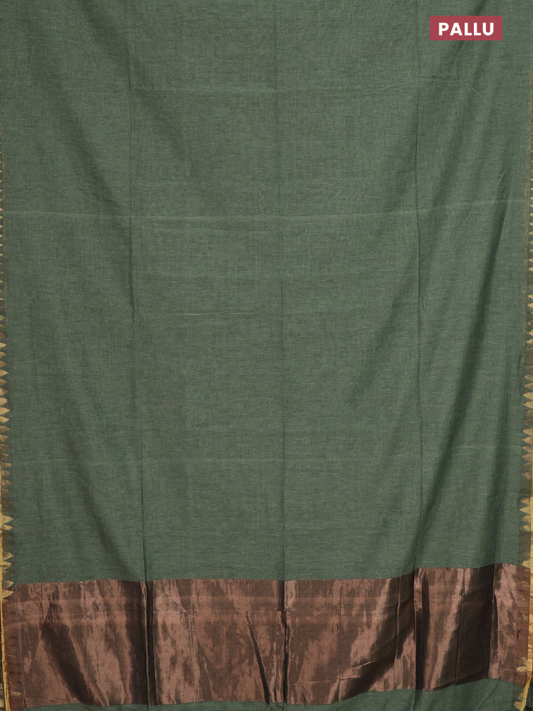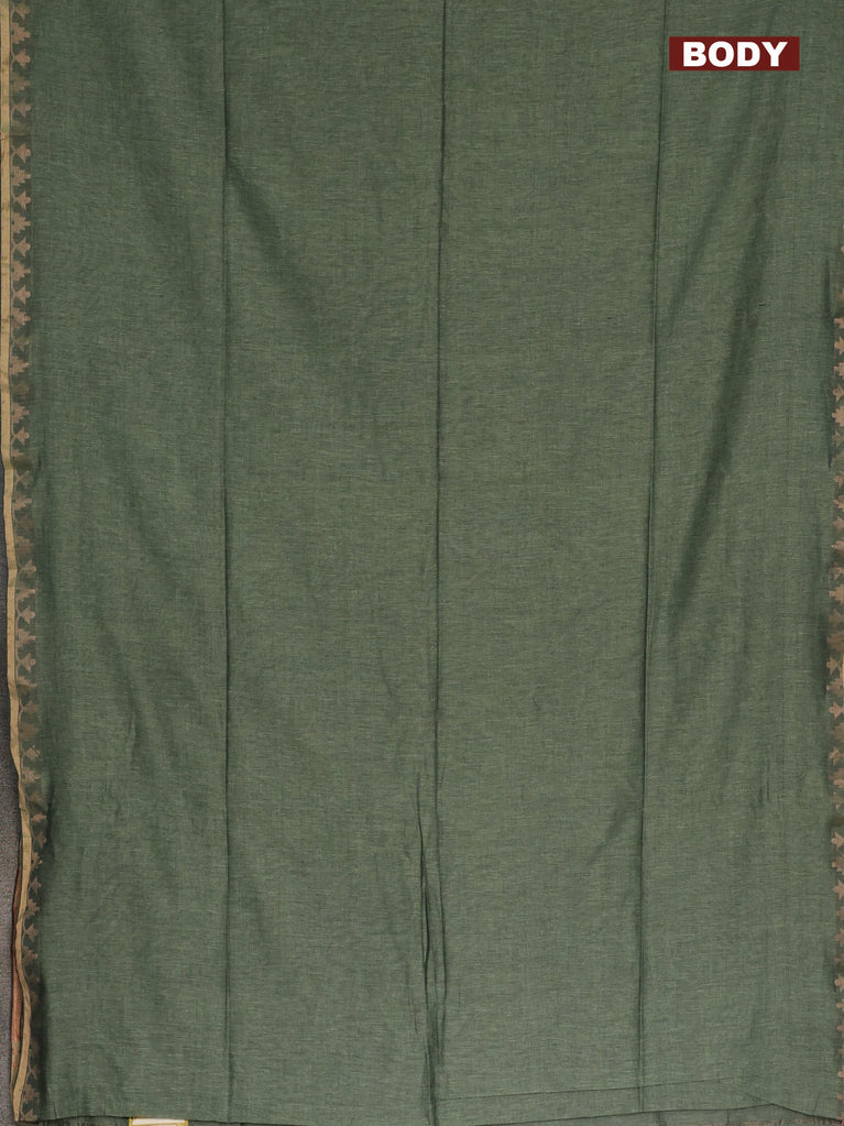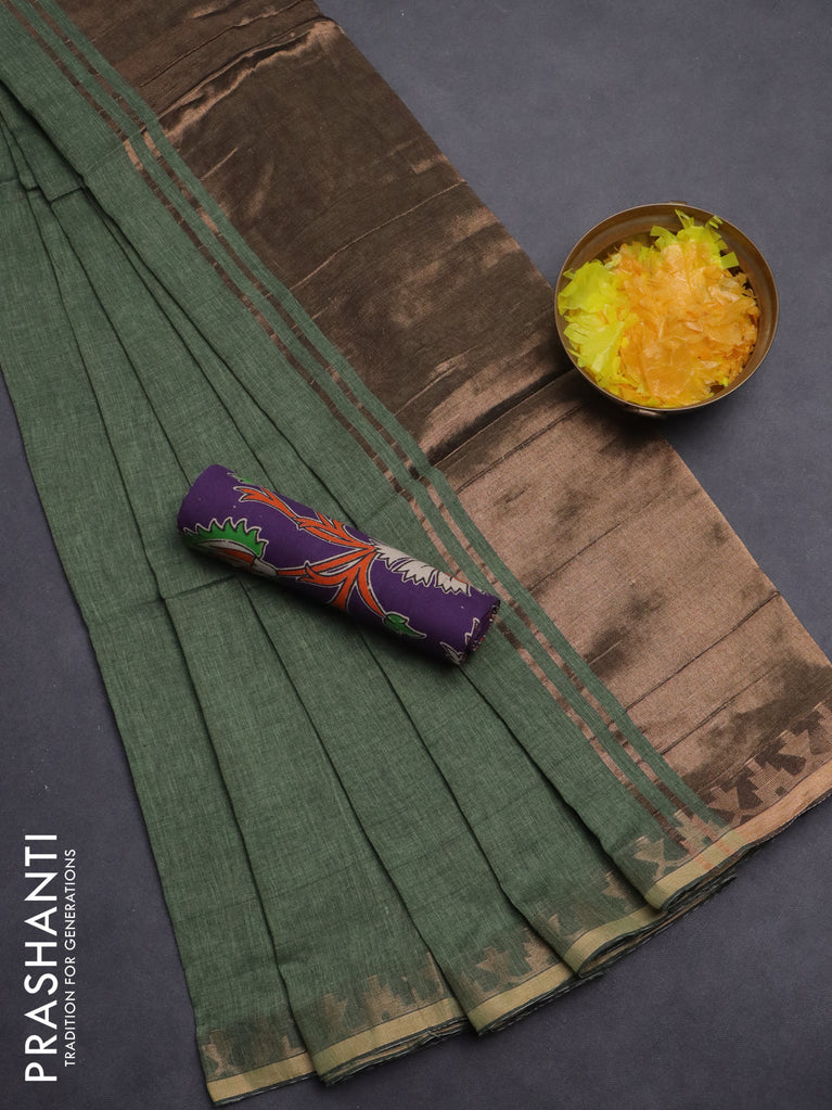 Bengal soft cotton saree green shade and brown with plain body and zari woven border