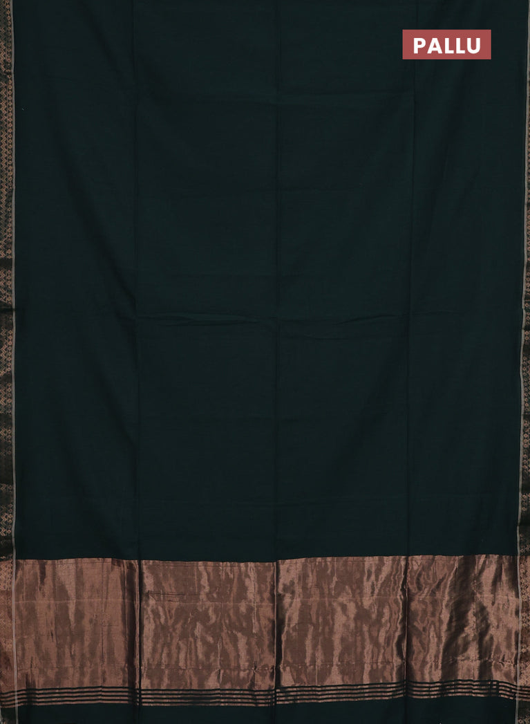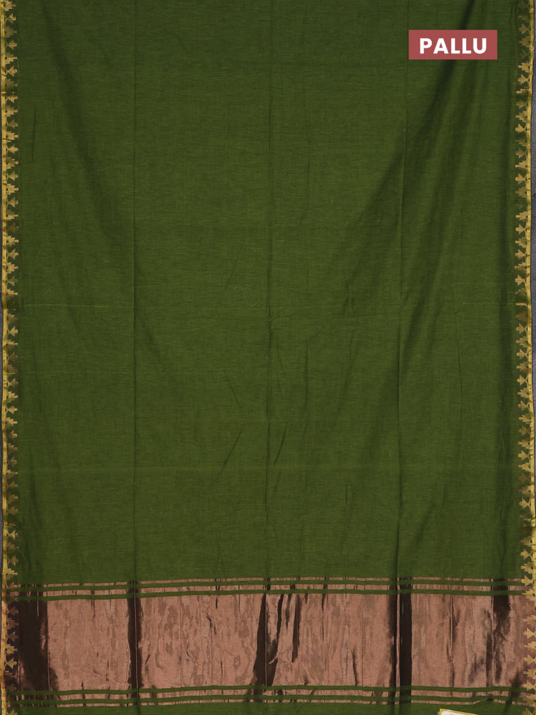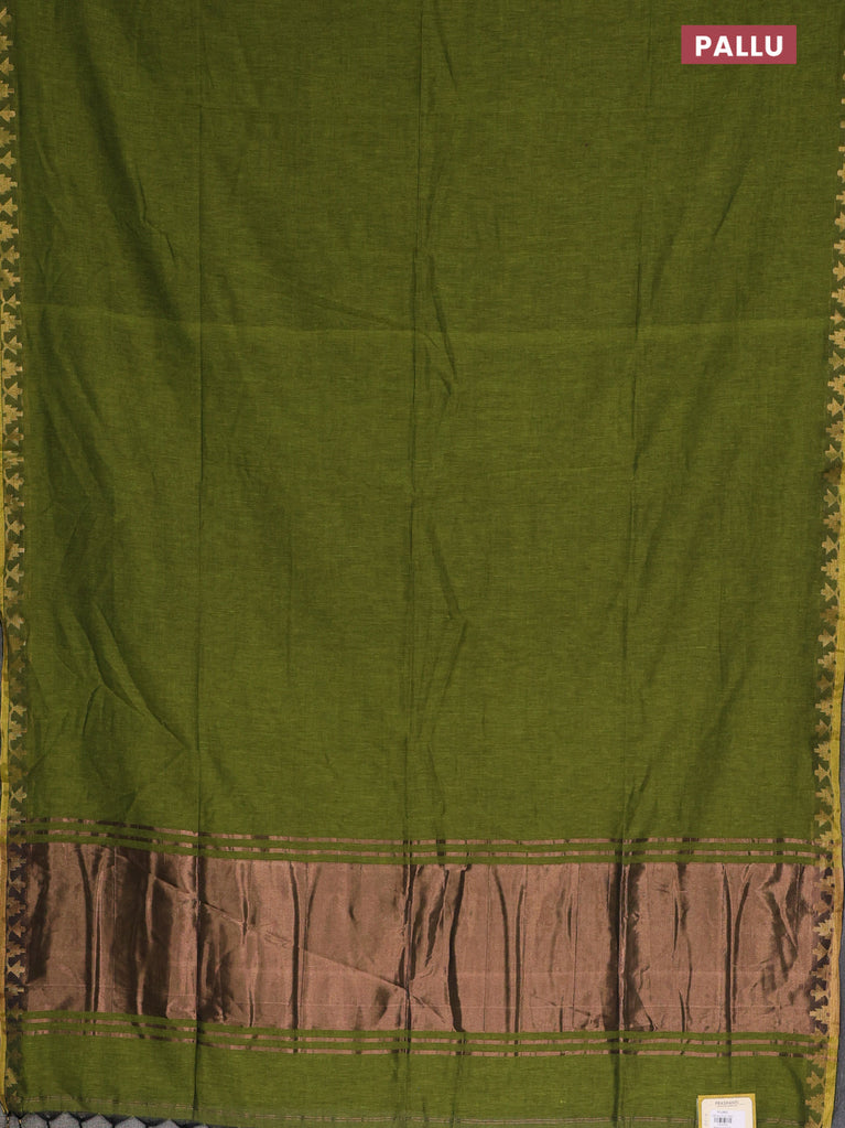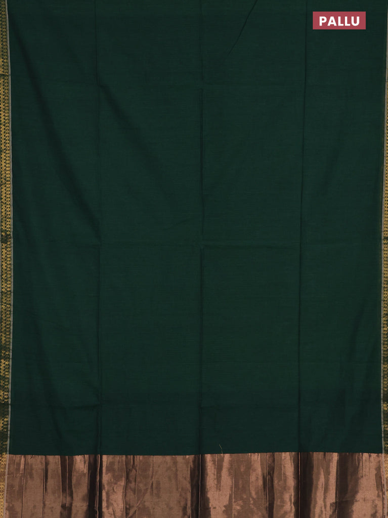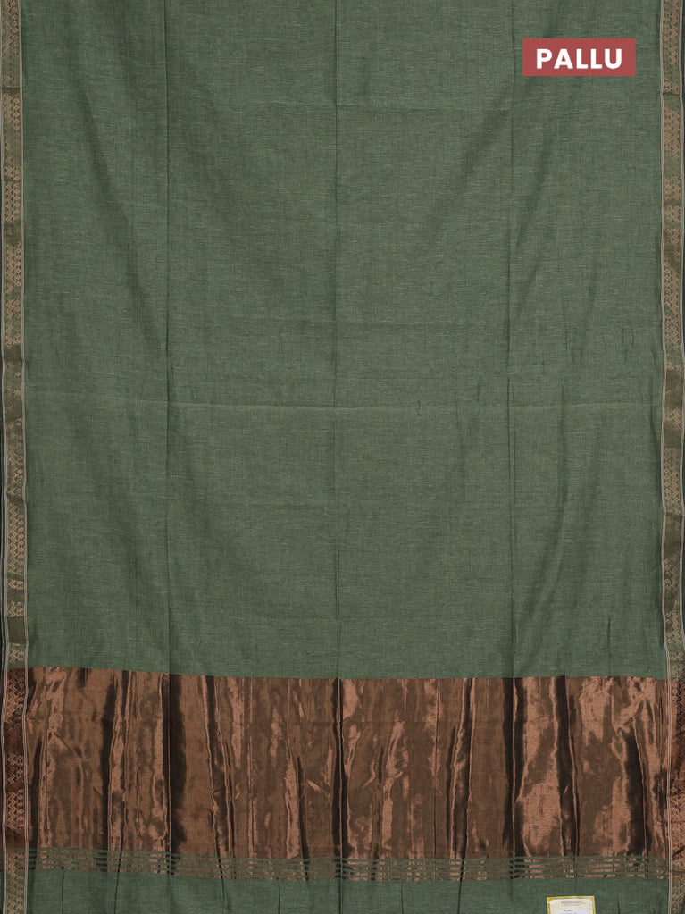 Bengal soft cotton saree green shade and brown with plain body and zari woven border