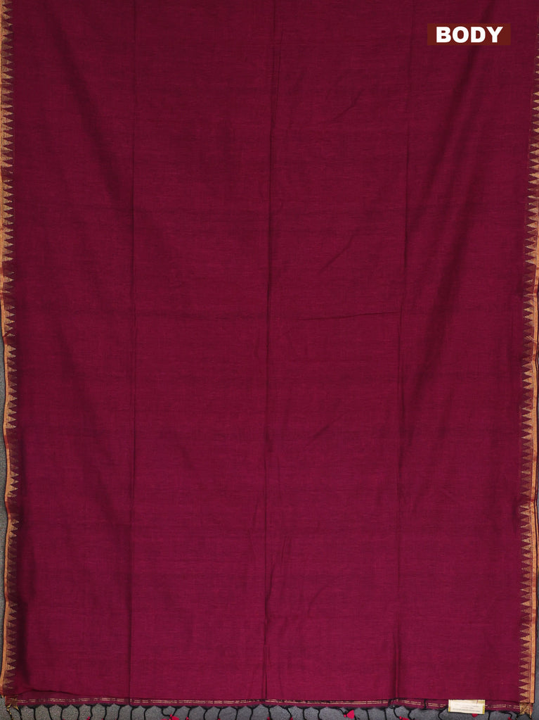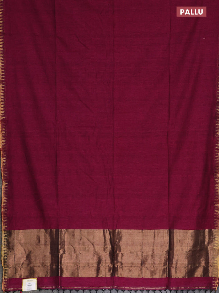 Bengal soft cotton saree magenta pink with plain body and zari woven border