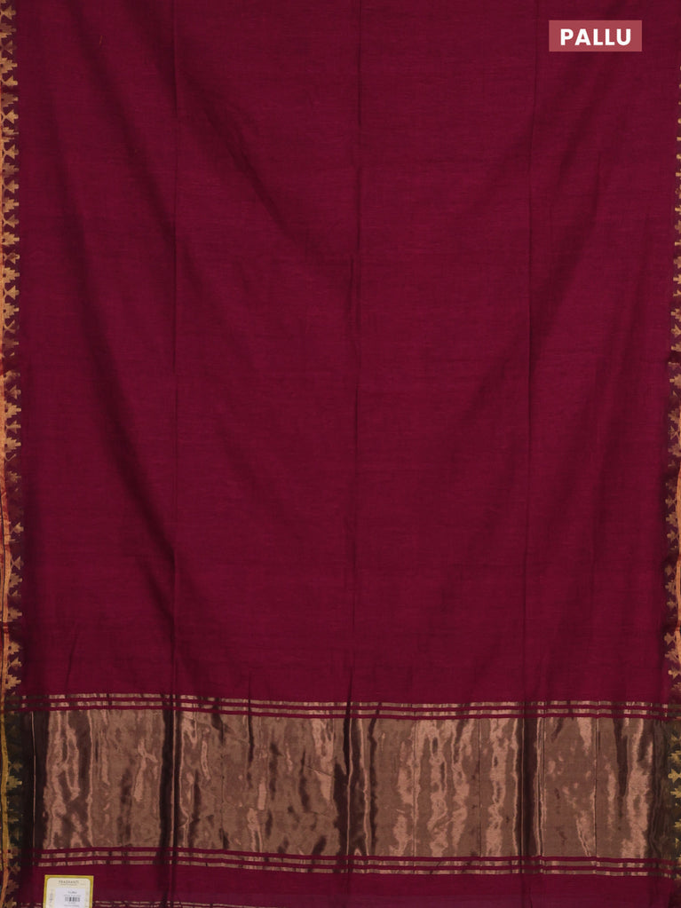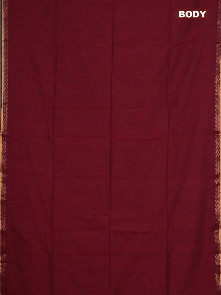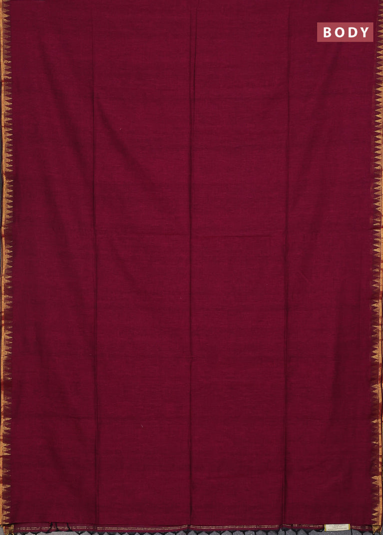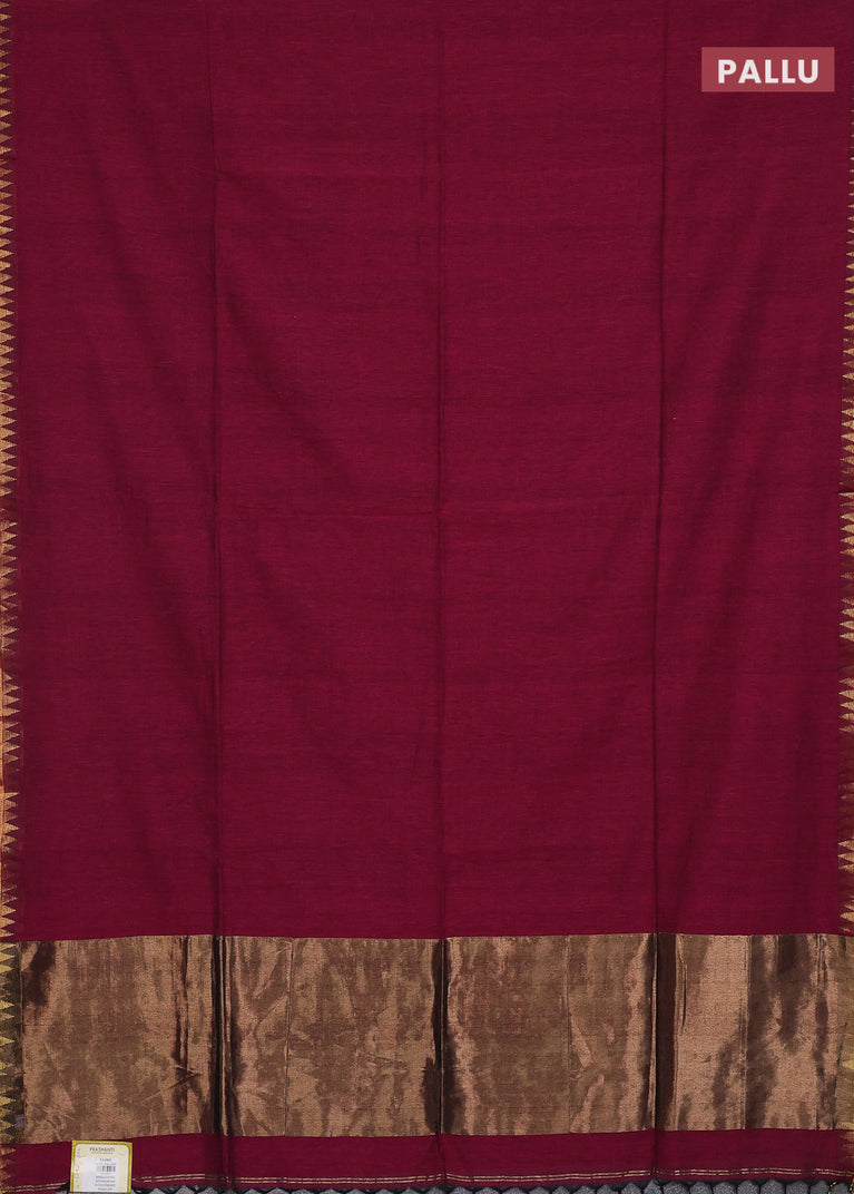 Bengal soft cotton saree maroon and blue with plain body and zari woven border