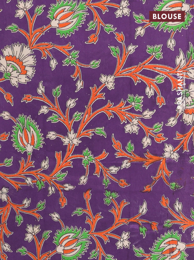 Bengal soft cotton saree green shade and violet with plain body and zari woven border