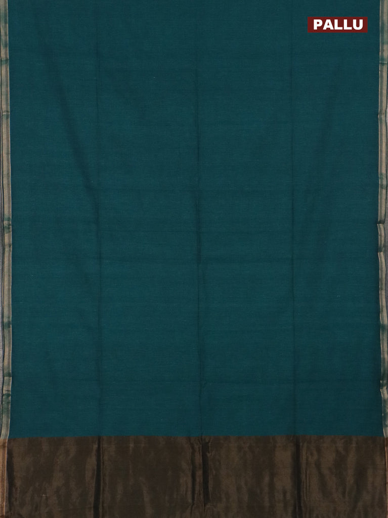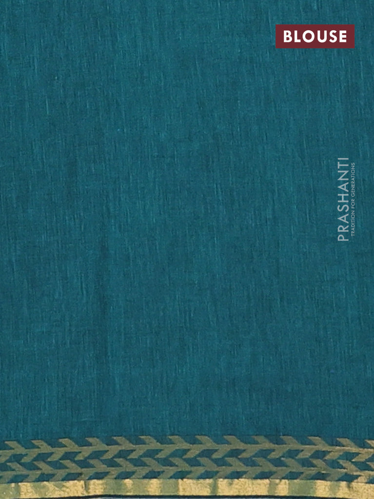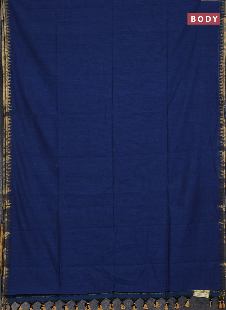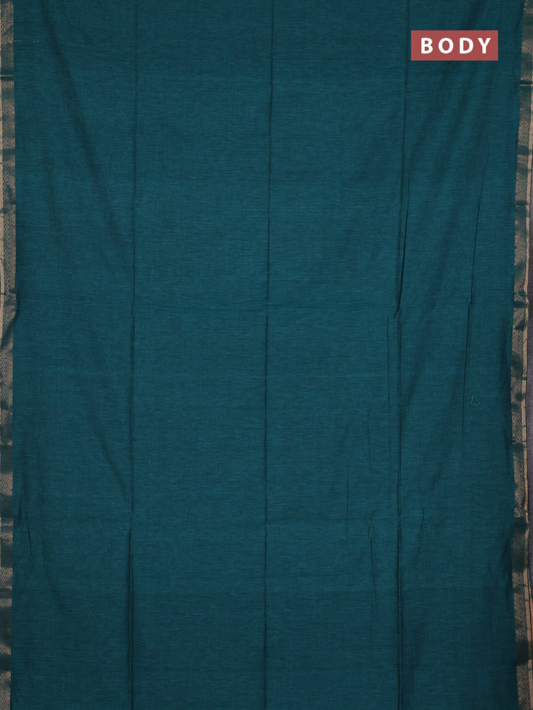 Bengal soft cotton saree peacock blue with plain body and zari woven piping border