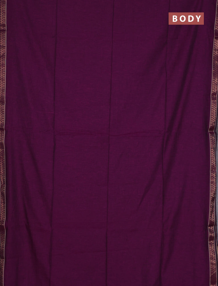 Bengal soft cotton saree purple and blue with plain body and zari woven border