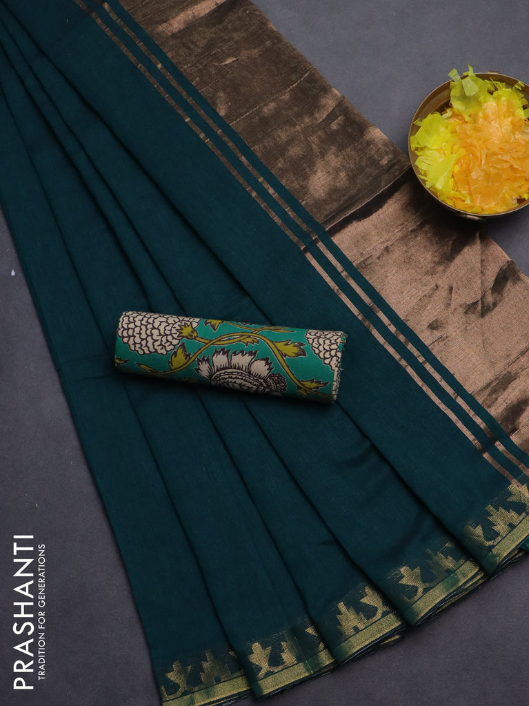 Bengal soft cotton saree peacock green with plain body and zari woven border