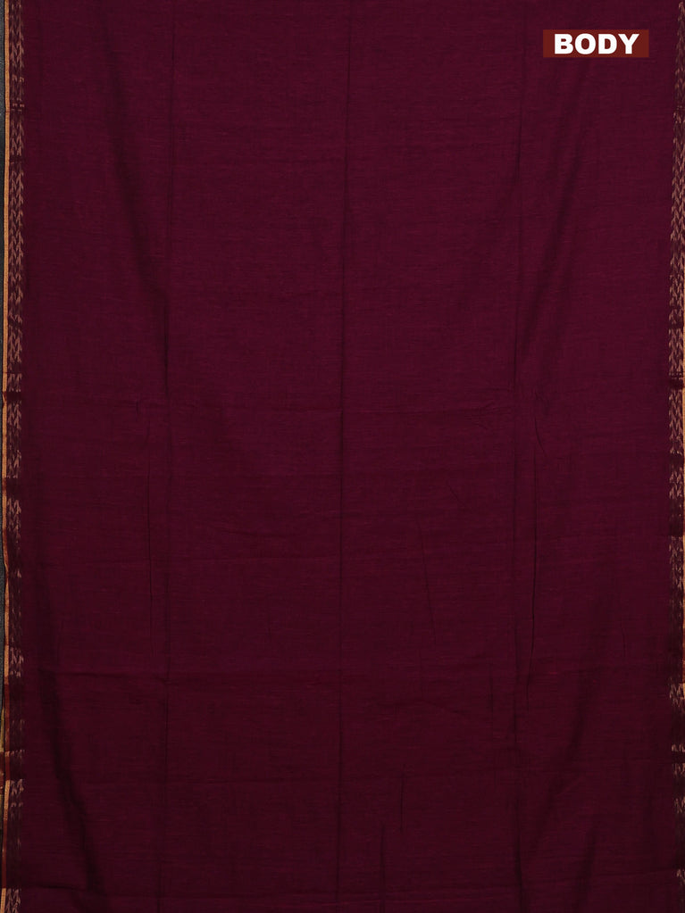Bengal soft cotton saree peacock blue and maroon with plain body and zari woven border