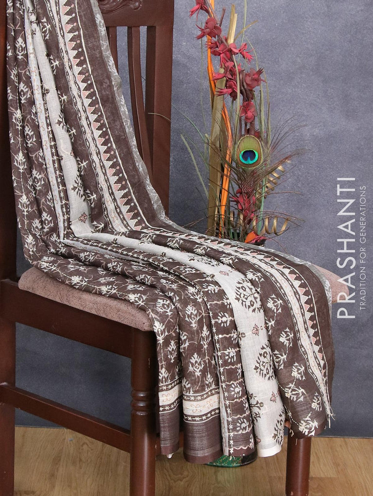 Bhagalpuri saree orange and grey with allover ikat prints and simple zari border