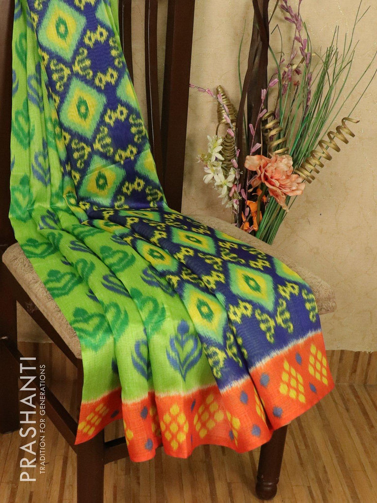 Bhagalpuri saree green and blue with allover ikat prints and simple zari border - TFR5990