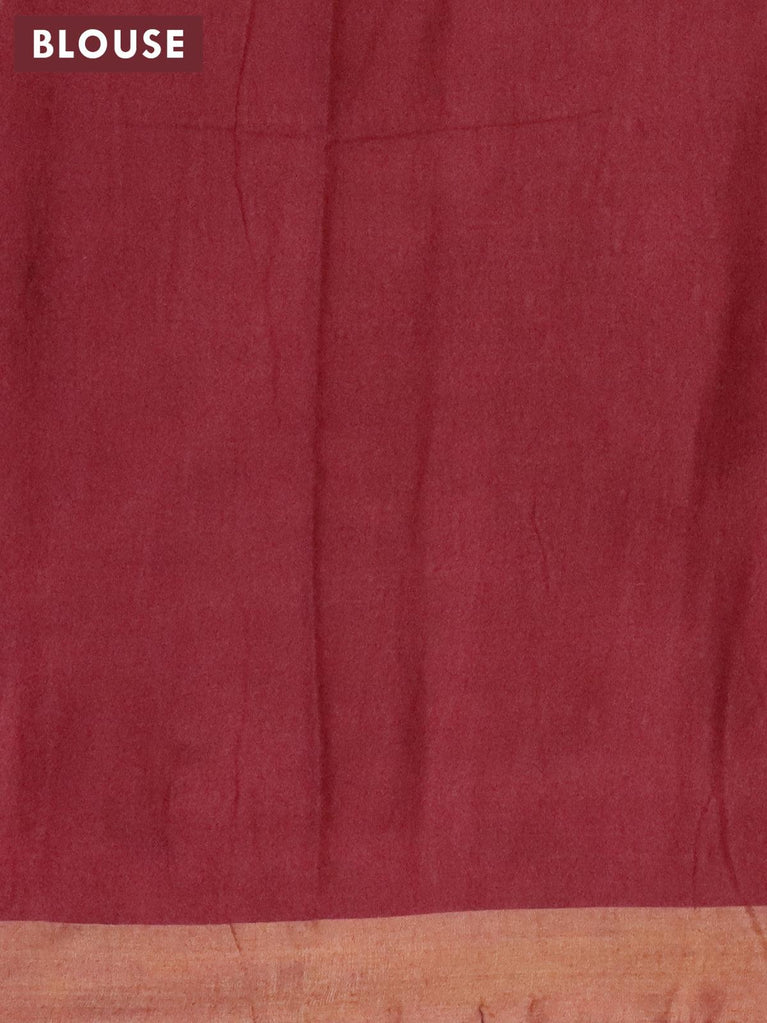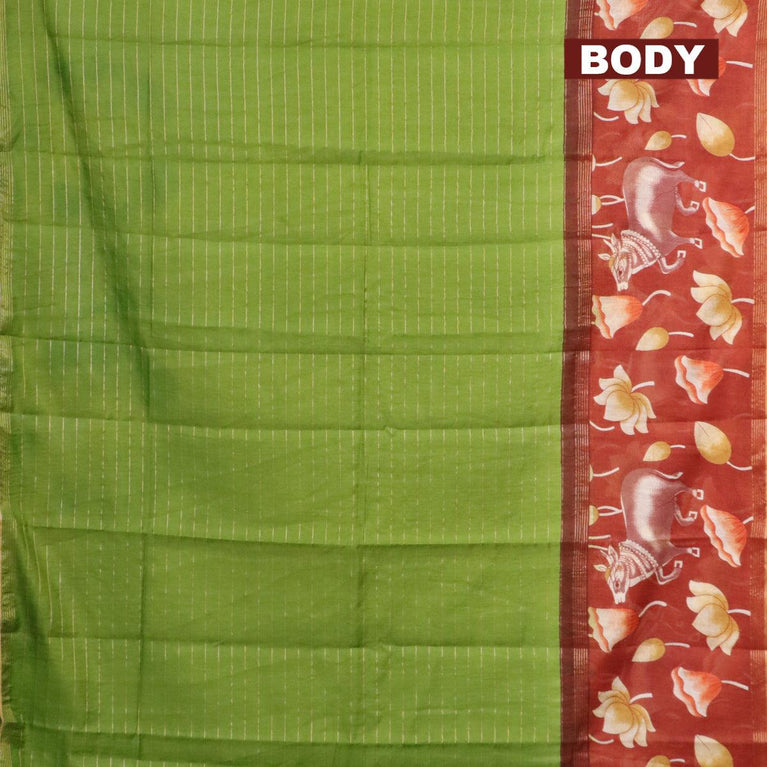 Bhagalpuri saree light green and rust shade with allover zari woven stripes pattern and pichwai printed border