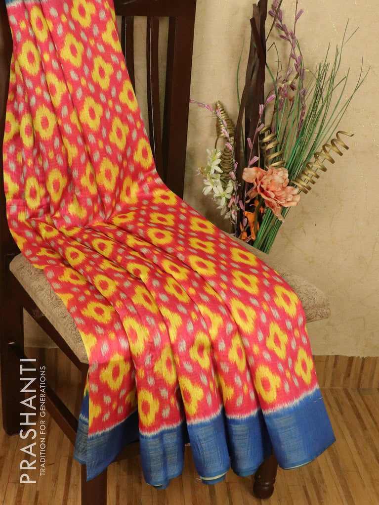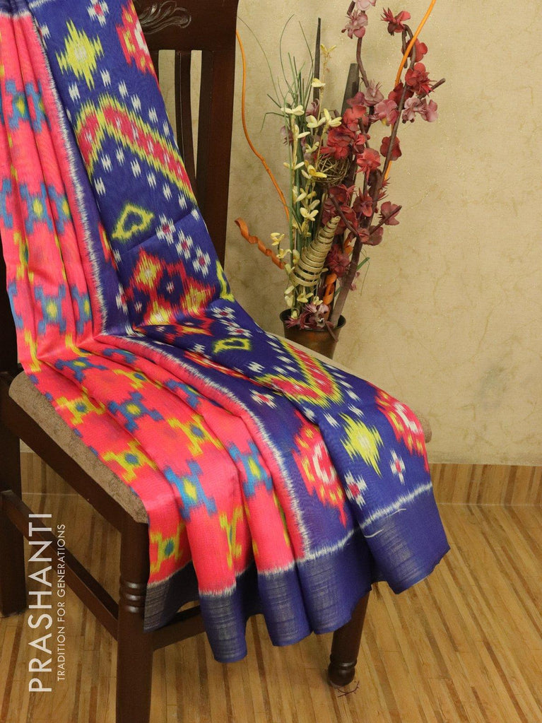 Bhagalpuri saree pink and blue with allover ikat prints and simple zari border