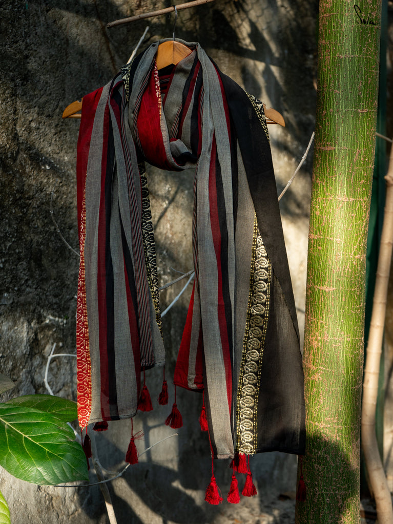 Embrace elegance with the Blackberry Jam dupatta. Woven from soft mul cotton, its deep black hue adds a touch of mystery, making you feel sophisticated and refined with every wear.