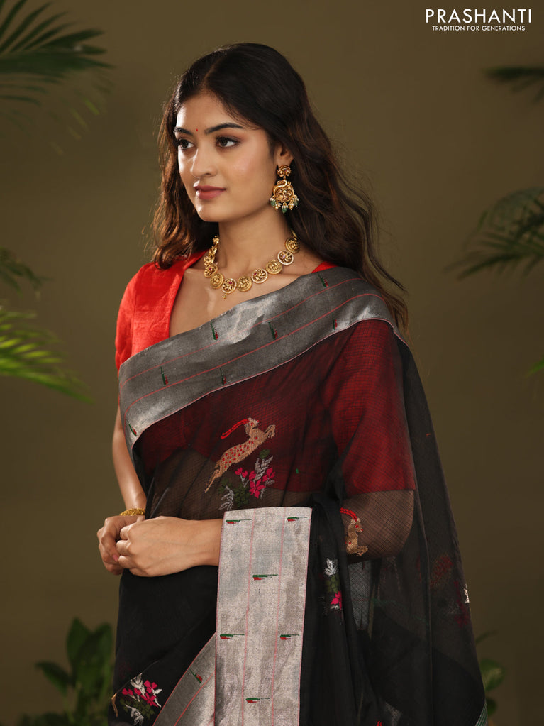 Black Zari Kota With Rich Silver Zari Paithani Pallu Weaving