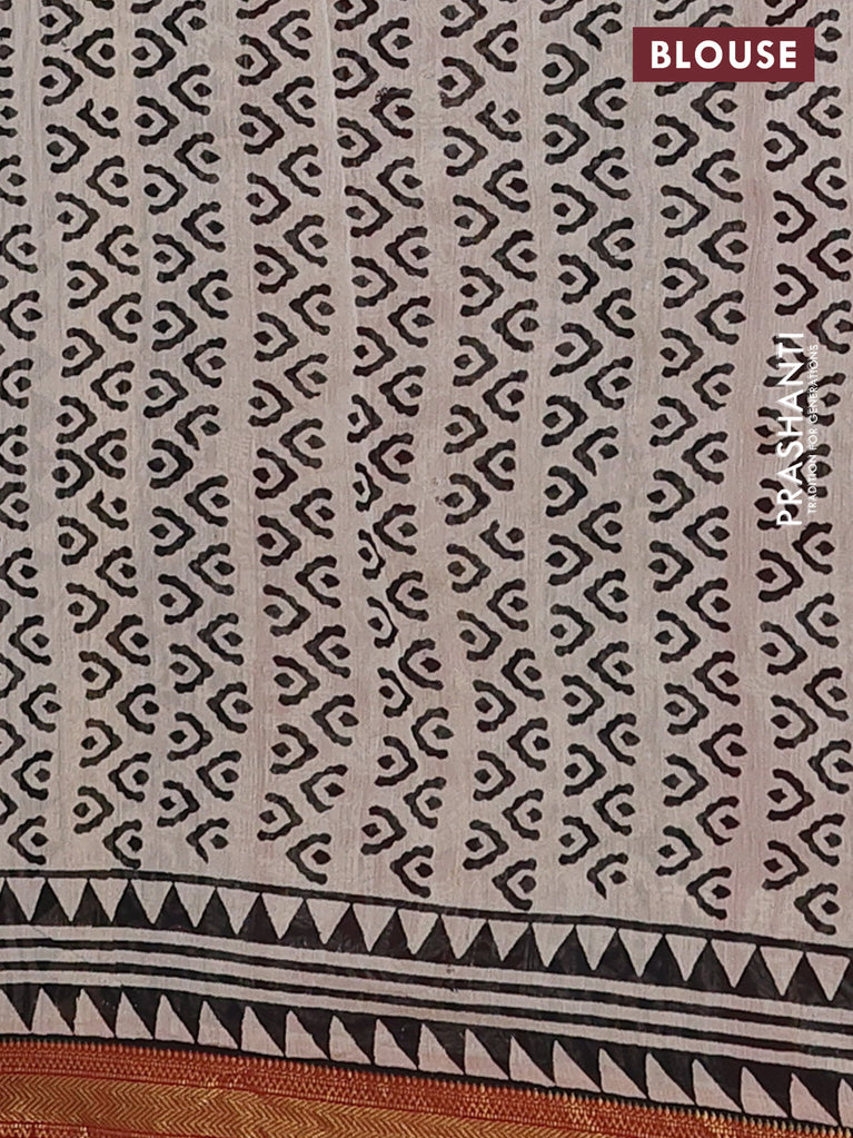 Chanderi bagru saree pastel brown and black with allover ajrakh prints and small zari woven border