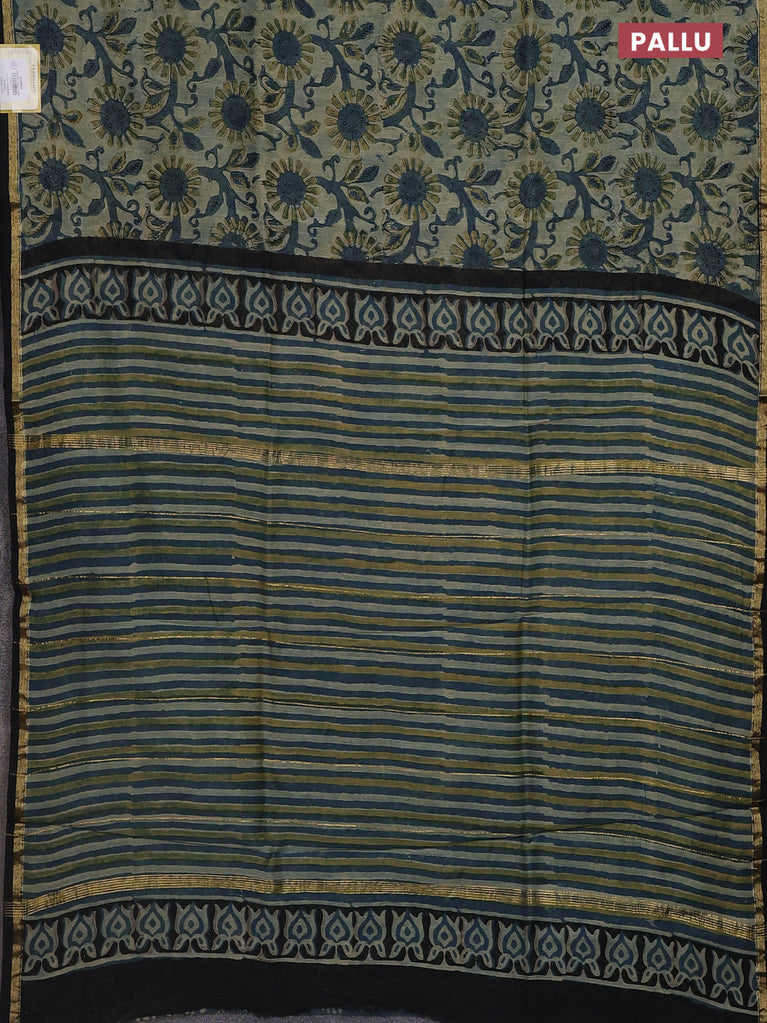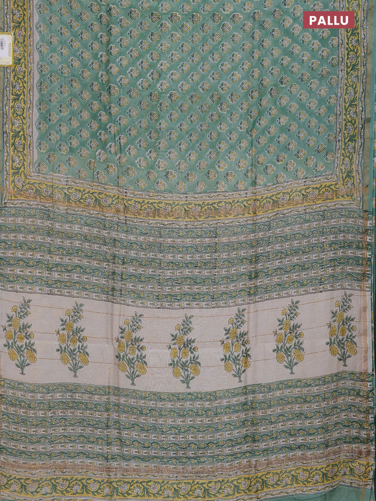 Chanderi bagru saree green with floral butta prints and small zari woven border