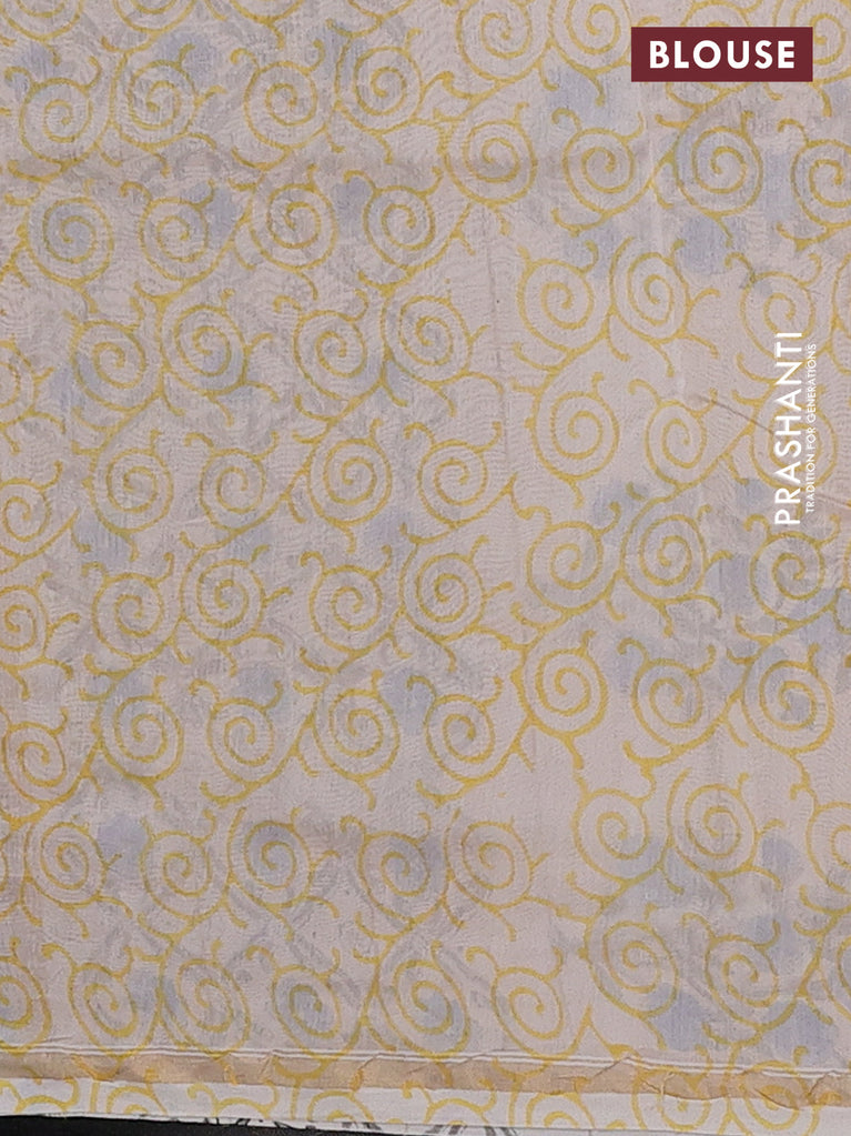 Chanderi bagru saree pale yellow and blue with allover floral butta prints and small zari woven border