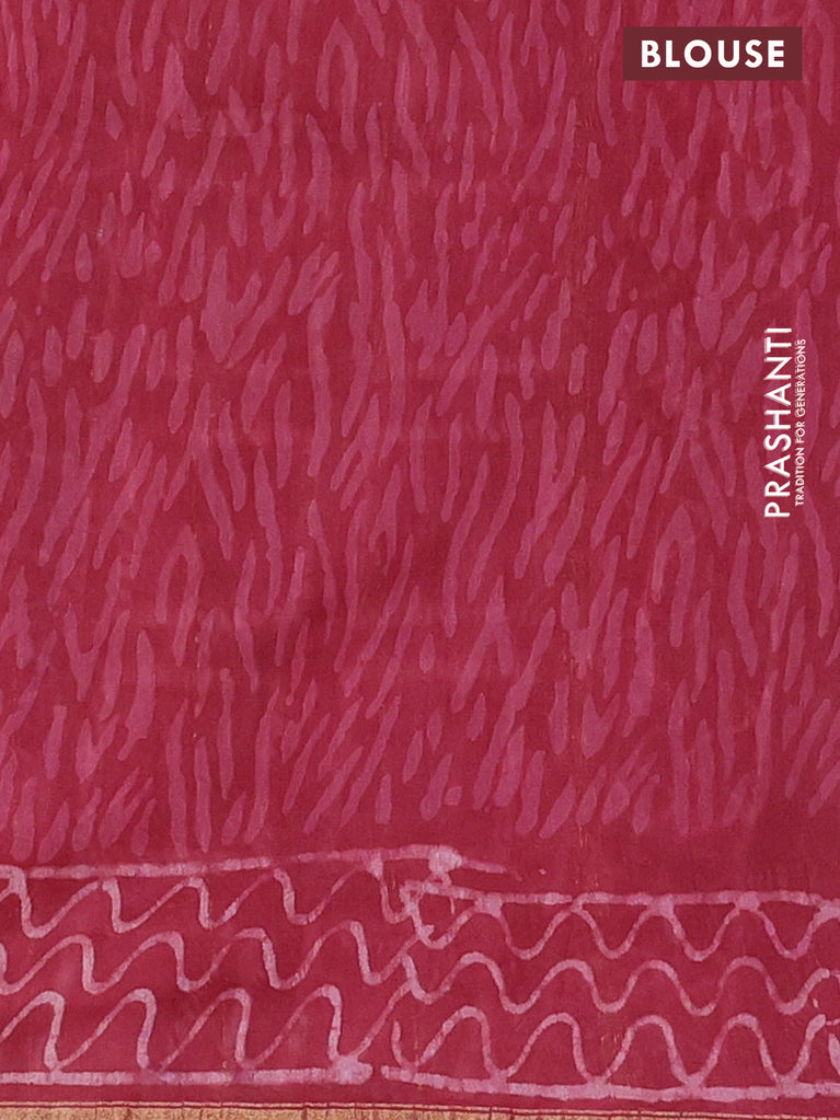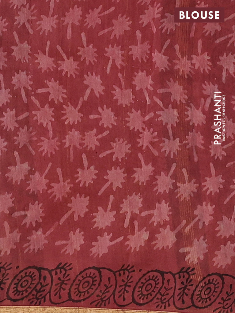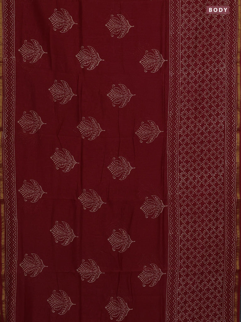 Chanderi bagru saree maroon with butta prints and small zari woven border