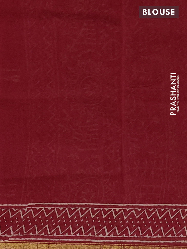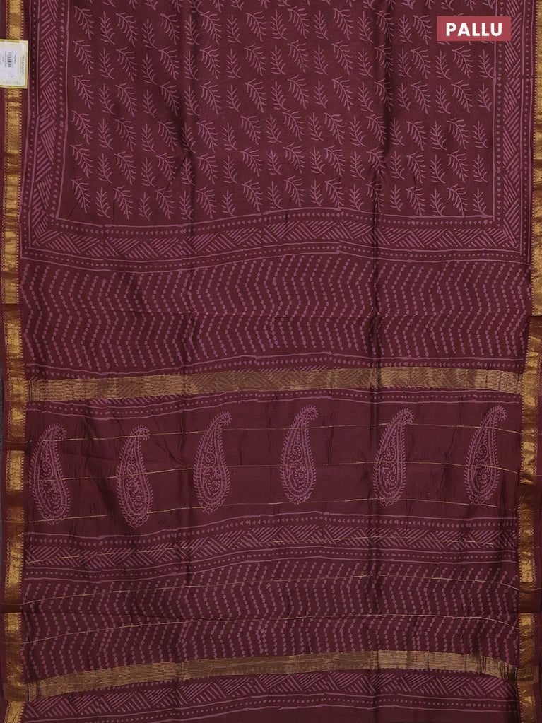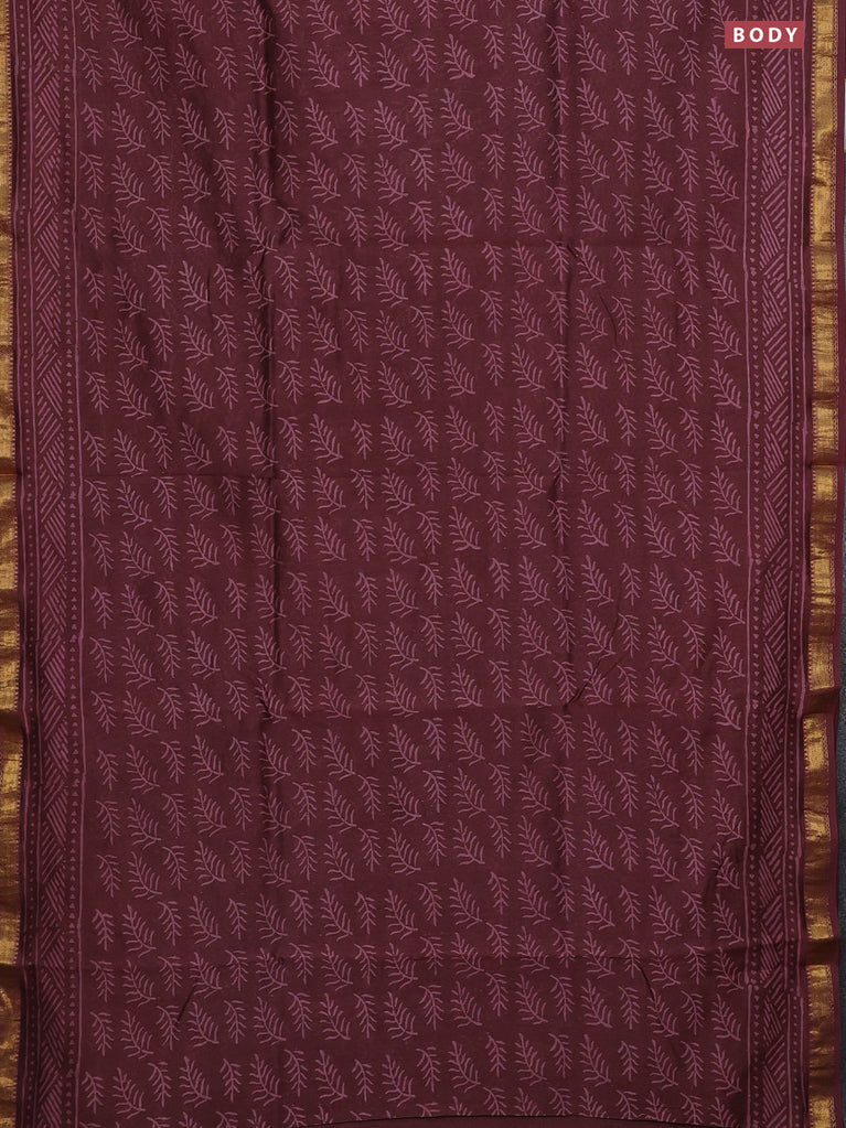 Chanderi bagru saree maroon shade with allover prints and maheswari border