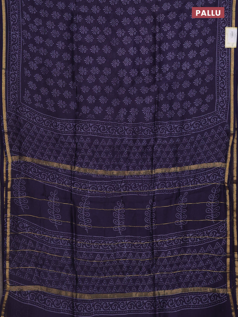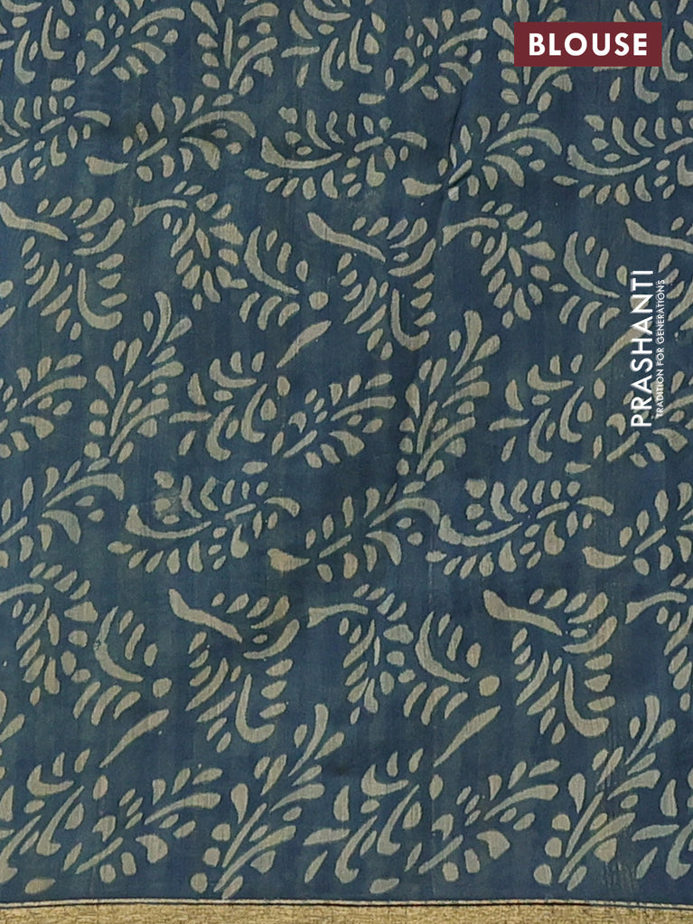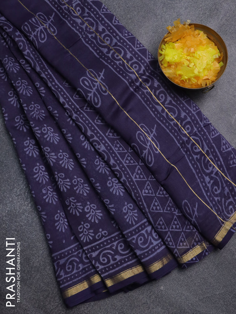 Chanderi bagru saree navy blue with allover butta prints and small zari woven border