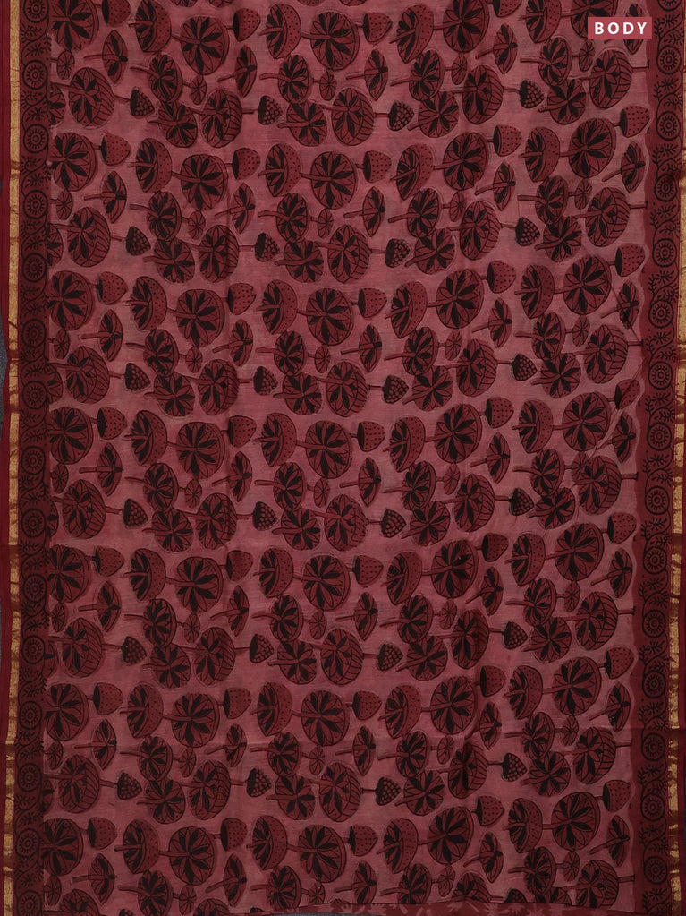 Chanderi bagru saree maroon and black with allover kalamkari prints and mageshwari border